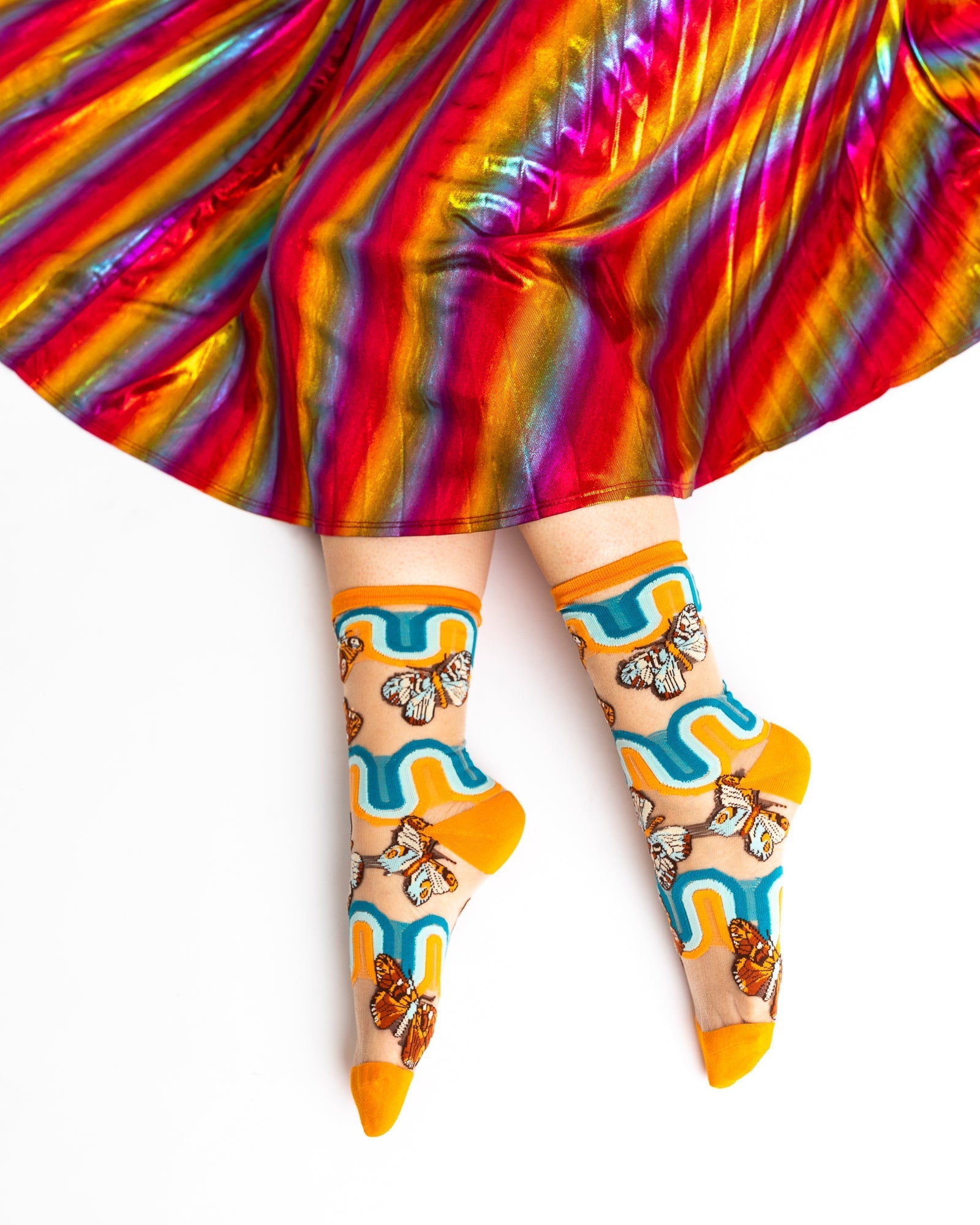 '70s Rainbow Butterfly Sheer Crew Sock