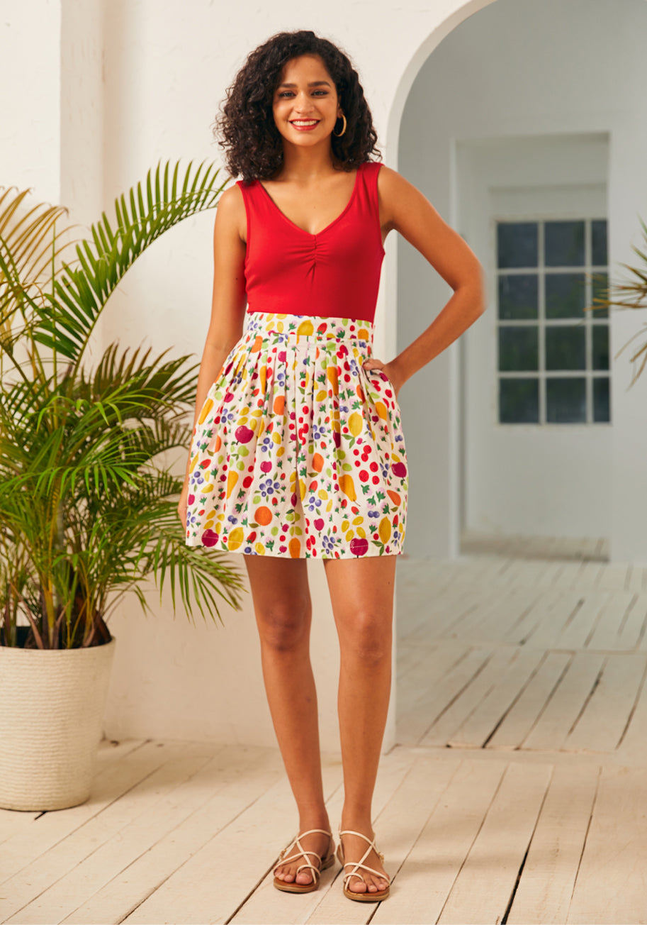 Take a twirl in the zest of summer with this frolicsome skater skirt from our ModCloth namesake label. Draped in a playful fruit stand print on a soft cotton blend, it flaunts a flirty, mini silhouette that's perfect for sun-soaked picnics and spontaneous dance floors. The comfortable, cinched waist ensures a snug fit, while its lightweight fabric makes it a staple for any casual carnival or delightful date under the stars.