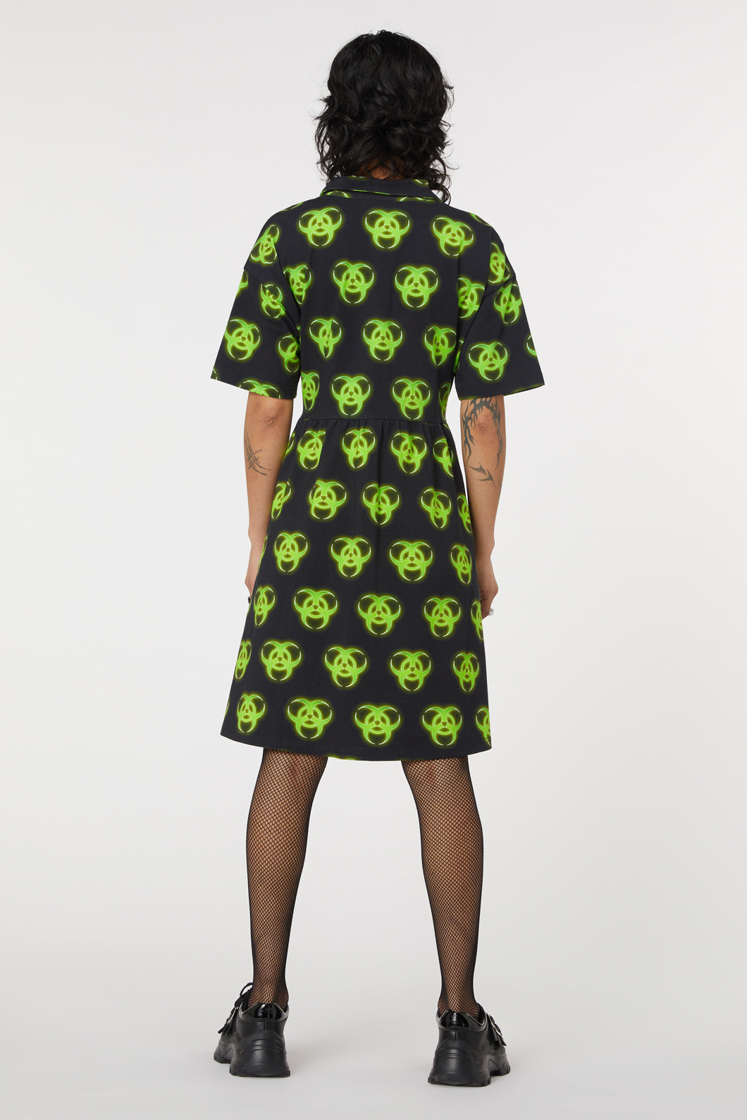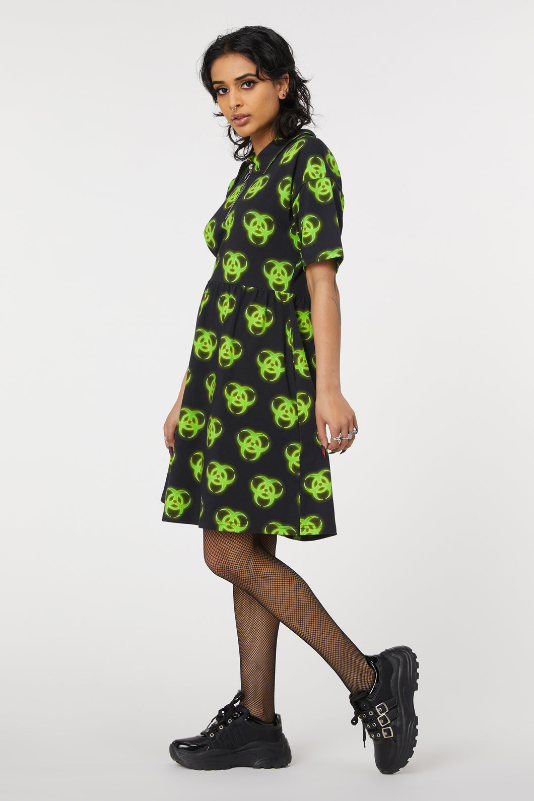 Printed Smock Dress by Dangerfield. The collar with front metal zip closure adds a modern twist, while the side pockets provide practicality without sacrificing style.