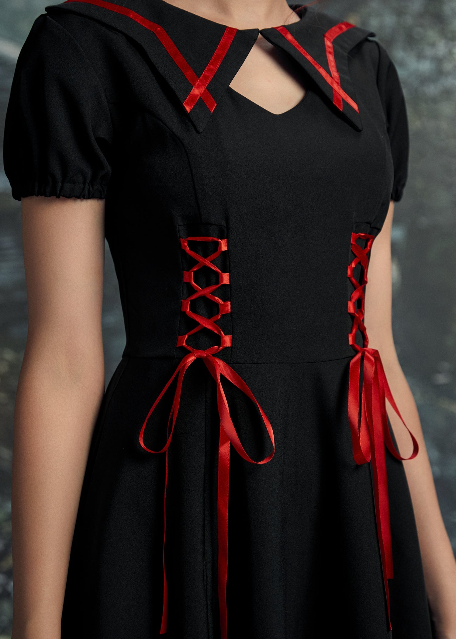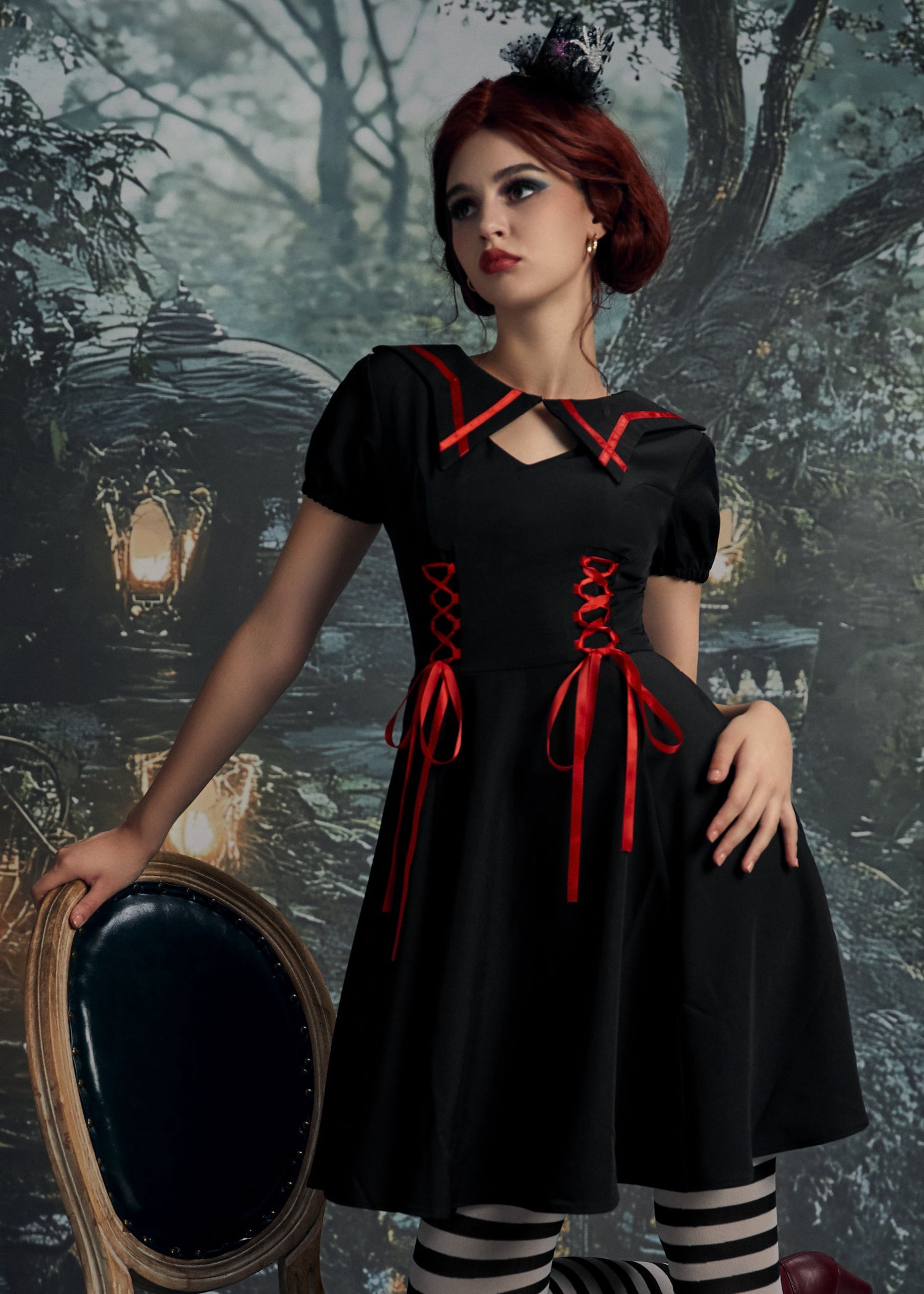 Dark romance meets vintage flair in the Black & Red Trim Gothic Swing Dress by Orchid Bloom. Featuring a striking red trim against a deep black base, this swing silhouette captures gothic elegance with a touch of retro charm—perfect for moody evenings, alternative styling, or standout everyday wear.