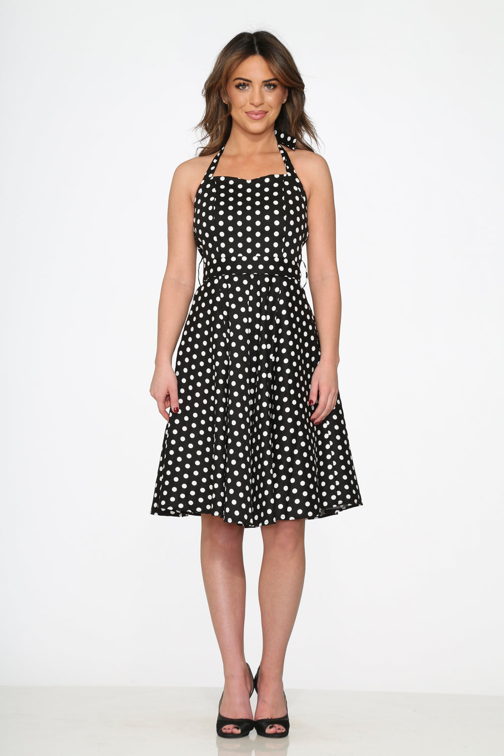 Dot your style with vintage charm in the Orchid Bloom Black & White Polka Dot Halter Swing Dress! With its classic halter neckline and flirty polka dot print, this retro-inspired favorite is ready to twirl through garden parties, date nights, and everything in between. The full swing skirt and stretchy cotton blend ensure comfort and style in perfect harmony.