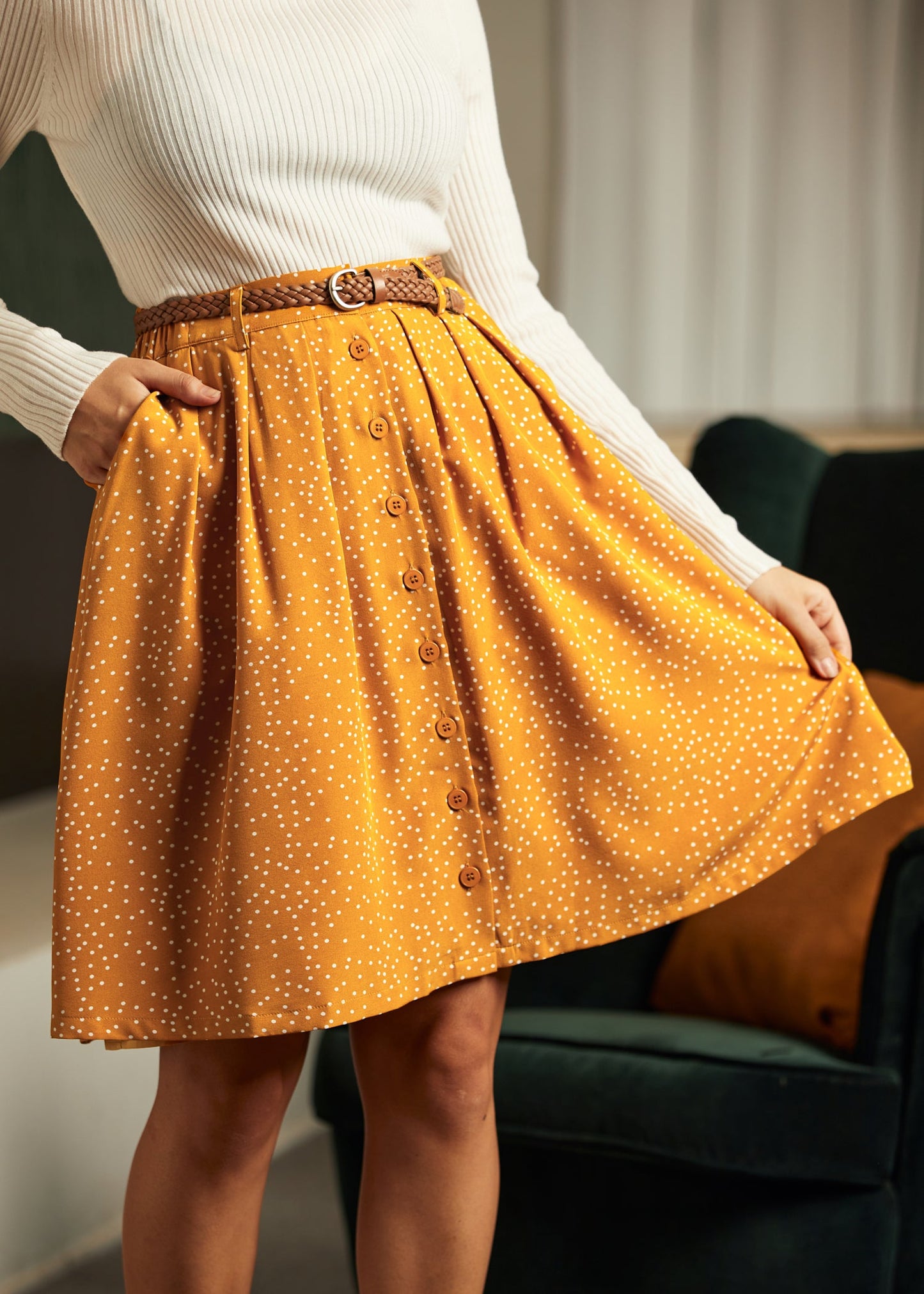 Bookstore's Best Skirt in Golden Age Dot print from our ModCloth namesake label captures the mysterious allure of night skies. This woven skirt, featuring convenient pockets and an easy elastic waist, is designed for dreamers and night owls. Whether attending a late-night poetry slam or a stargazing event, this skirt illuminates your ensemble with a touch of whimsy and a lot of comfort.