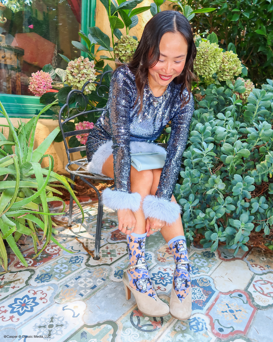 Get ready to haunt your wardrobe (in the cutest way possible) with the Casper and Trees sheer sock – a spellbinding collaboration between Sock Candy and Casper the Friendly Ghost™! These ethereal socks feature Casper himself gleefully floating among enchanted blue and black trees that pop against a sheer background. Accents of lavender-blue at the heel, toe, and cuff add a dreamy pastel finish. Whether you’re dressing up for Halloween or simply want a magical twist on your everyday style, these socks bring a spooky-chic accent to your look.