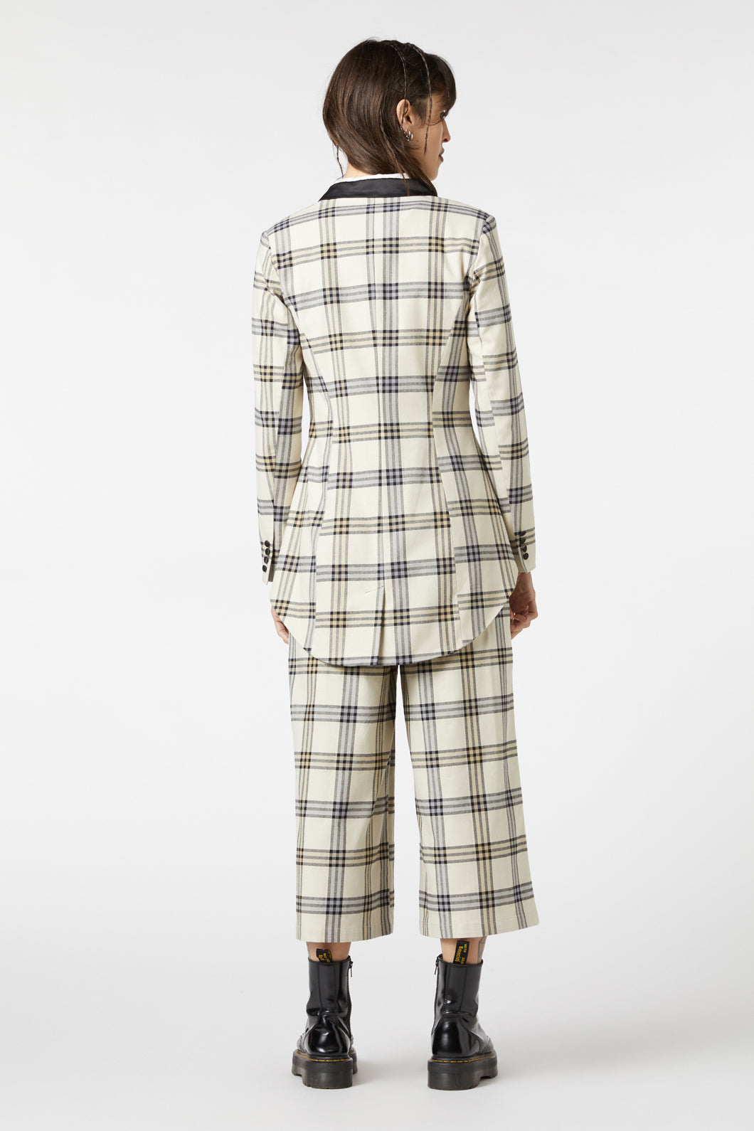 Step into timeless style with The Crescent Tartan Tail Coat by Dangerfield—a statement piece that combines classic vintage vibes with modern tailoring. This eye-catching tailcoat features an all-over bold tartan pattern and a sharp contrast lapel at the neckline, delivering a look that’s both sophisticated and edgy. With a double-breasted button design and strap detail across the front, plus long sleeves adorned with button accents, it’s filled with refined touches that make it a standout piece.