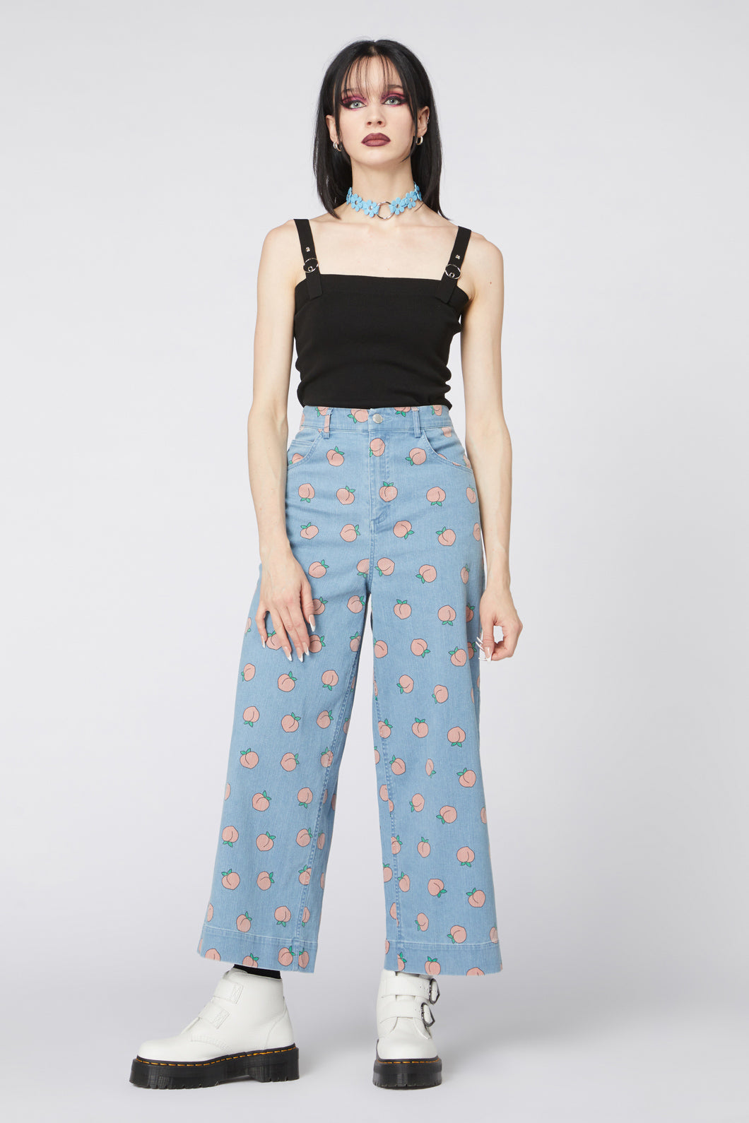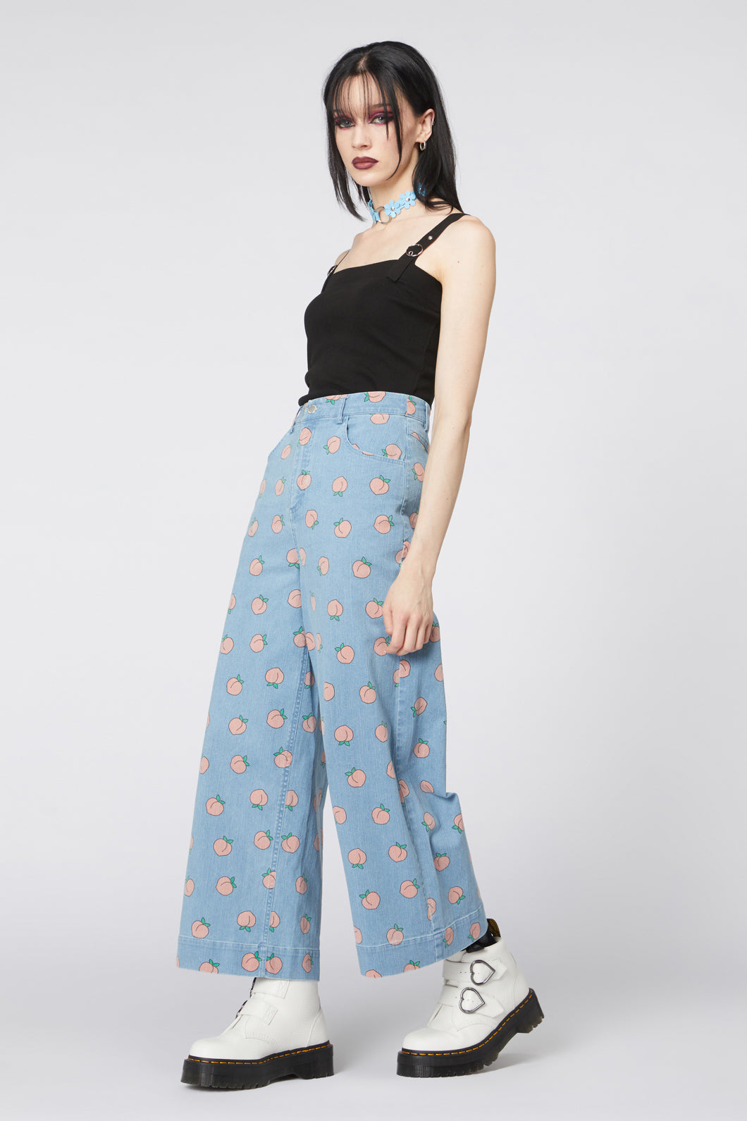 Add a playful twist to your denim collection with the Denim Peach Wide Leg Jeans by Dangerfield. Featuring an all-over peach print on soft stretch denim, these jeans combine retro charm with modern comfort. Designed with a flattering wide-leg silhouette and scoop pockets, they're the perfect mix of fun and functional.