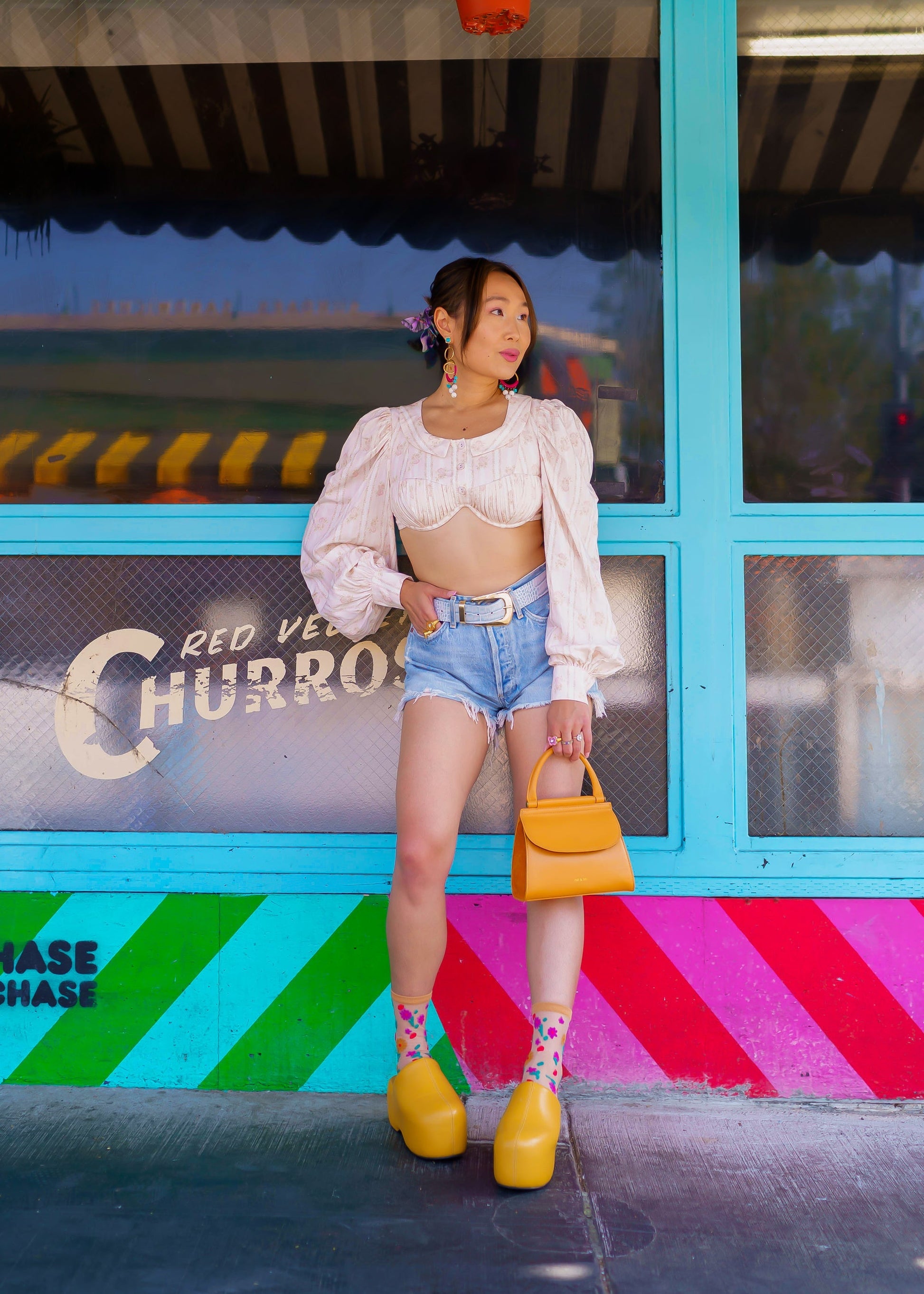 Feel like Spring all year round in vibrant florals paired with a bold heel and delicate sheer body. This sheer floral sock is designed to be worn with your seasonal transition shoes, such as a heeled mule or closed toe sandal.
