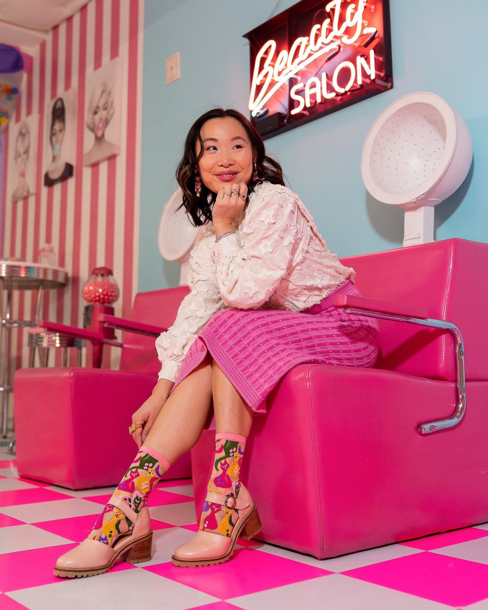 These sheer cat socks are sure to give you a shot of dopamine and boost your mood! Colorful and mischievous, our dopamine cats are artfully drawn in graceful poses and long tails. The perfect unique gift for any cat mom.