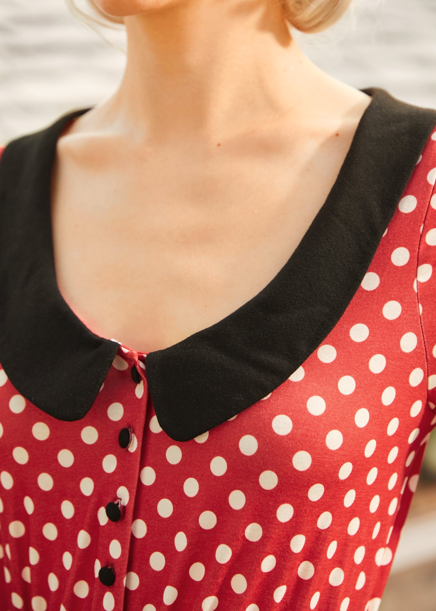 Step into retro charm with the Dottie Delight Collared Dress from our ModCloth namesake label! This vintage-inspired beauty features a playful polka dot print, a contrast Peter Pan collar, and a button-up bodice that adds a touch of nostalgia. Designed with a flattering elastic waist and a breezy A-line skirt, this dress is as comfortable as it is charming.