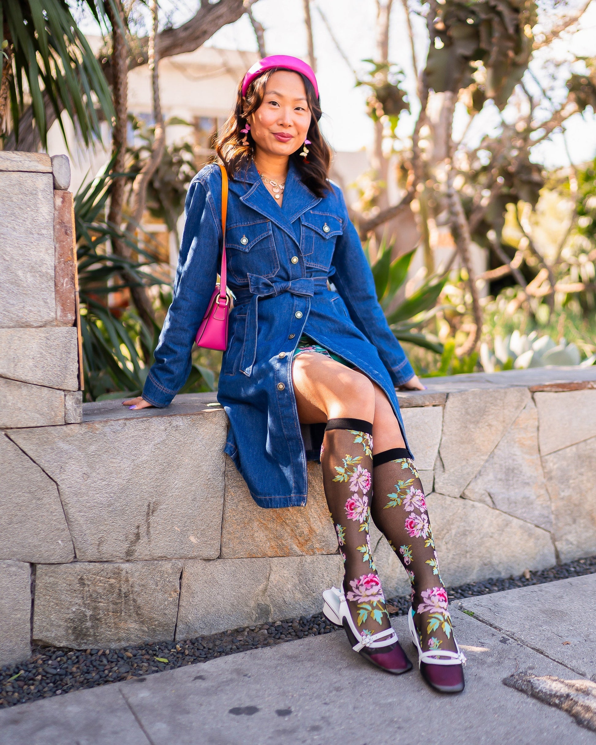 Our bestselling English Rose black sheer sock is now available in knee high length! Make a statement for Spring with pink roses that go all the way up to the knee, set against black sheer fabric for a sophisticated, Parisian chic vibe. Bring bold, whimsical charm to your Spring wardrobe with more of the print you love.Â