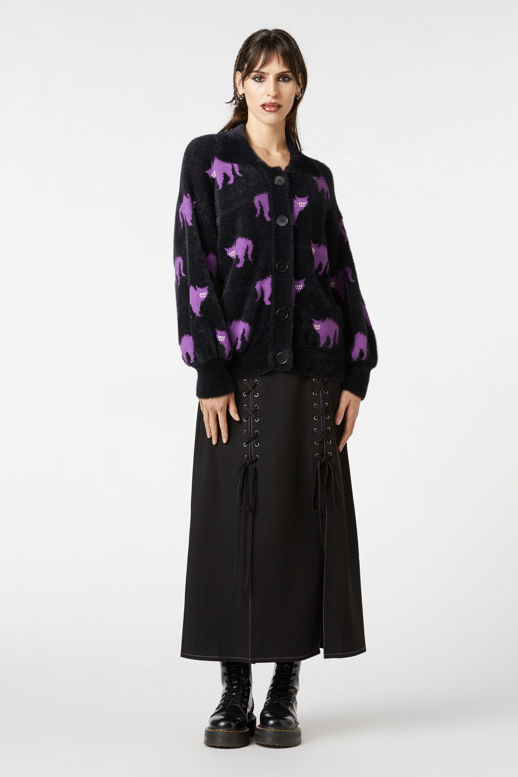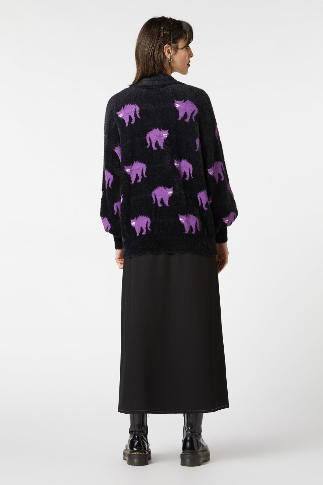 Let your wardrobe go delightfully off the rails with this soft and surreal statement layer. Featuring an all-over “Everyone’s Mad” print and a cozy, vintage-style collar, this knitted cardigan feels like a hug from the whimsical side of the void. A little eccentric, a little eerie—just the way we like it.
