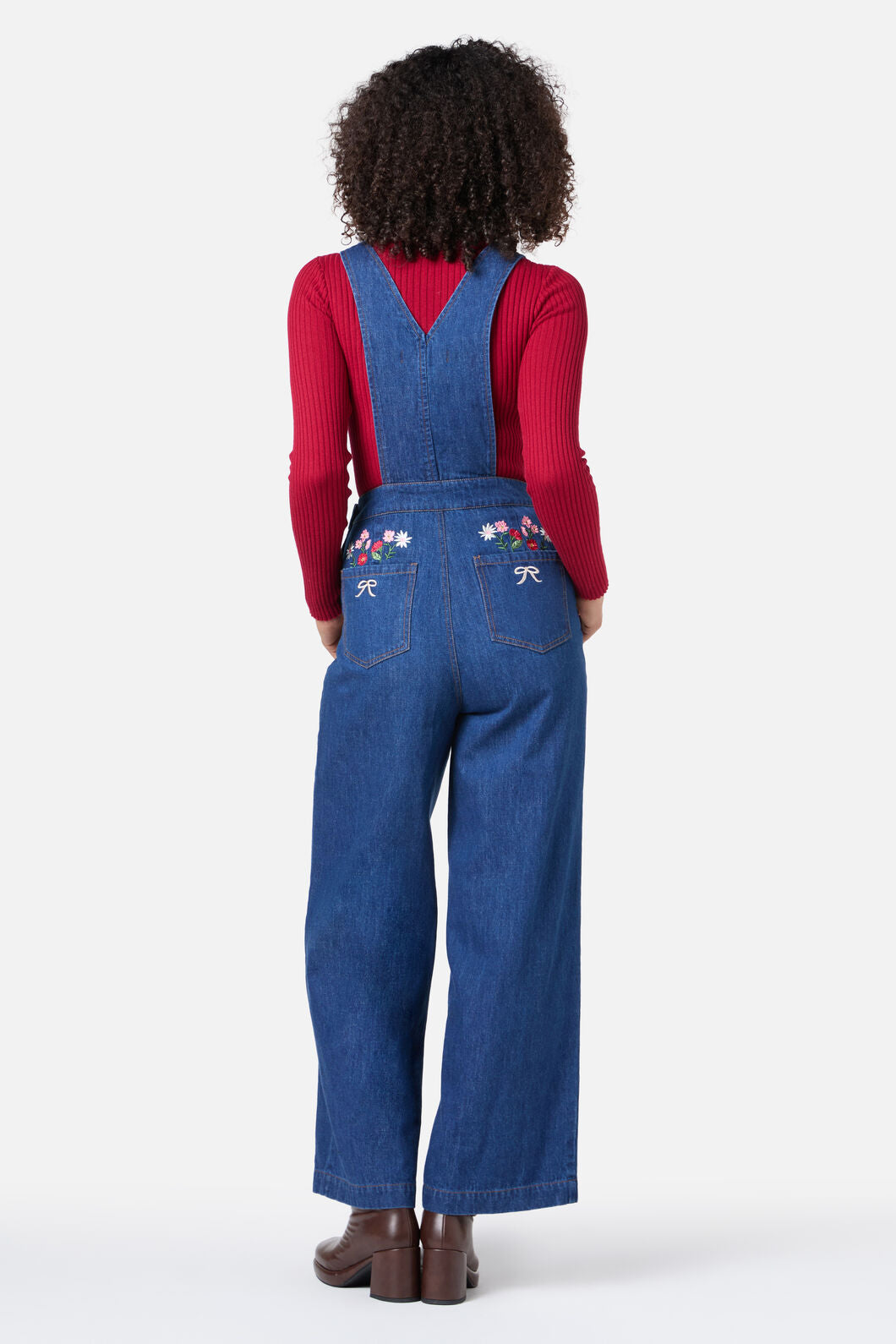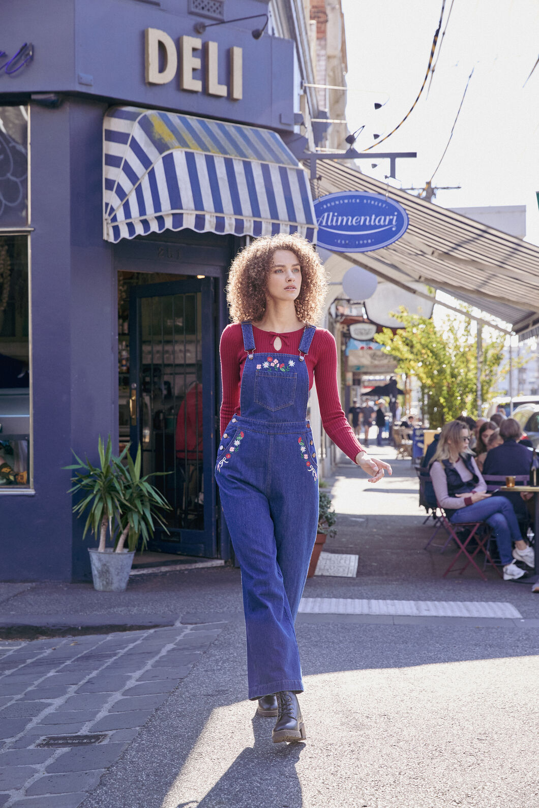 Add a playful flourish to your everyday look with the Flower Bow Embroidered Overall by Princess Highway. Made from classic rigid blue denim, this relaxed-fit overall features sweet pink and red floral and bow embroidery on the bib—bringing a feminine twist to a timeless workwear style. With a wide leg cut and adjustable straps, it’s made for layering with your favourite tees or blouses.