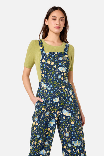 Add a touch of magic to your wardrobe with the Folk Art Overall by Princess Highway. Printed with a whimsical folk art design featuring suns, moons, hearts, flowers, and moths, this dreamy cotton overall brings playful charm and vintage spirit to your everyday look. With a relaxed wide-leg fit and adjustable cross-back straps, it’s as comfy as it is captivating.