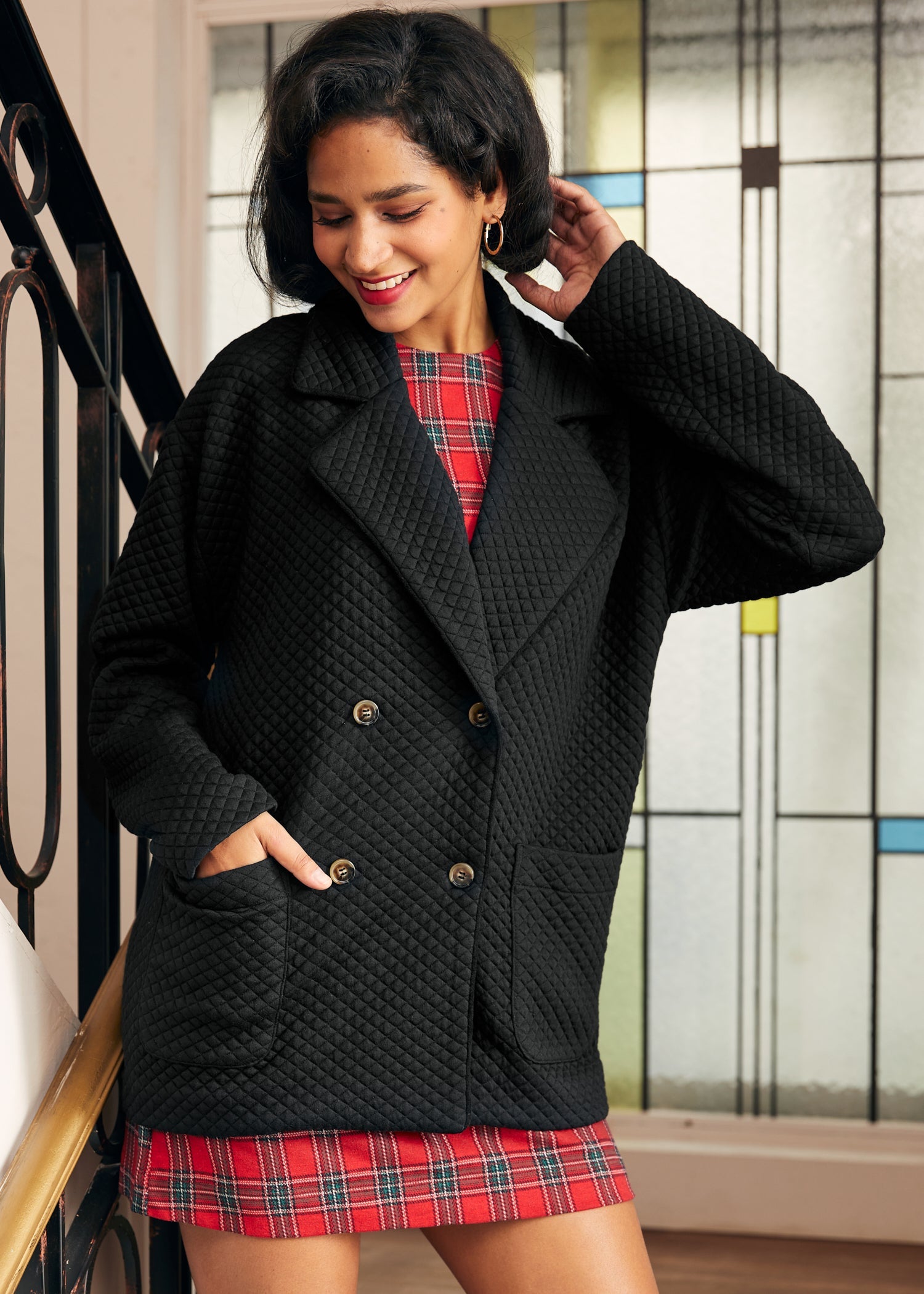 Wrap yourself in timeless style with the Forever a Favorite Double Breasted Jacket in Eclipse Noir. From our ModCloth namesake label, this black woven jacket boasts mechanical stretch for ease of movement, complemented by sharp contrast piping. Detailed with buttons and functional pockets, this pull-over piece is a staple for any vintage lover’s wardrobe. Whether dressing up for the office or layering for a crisp winter walk, this jacket is sure to be a go-to.