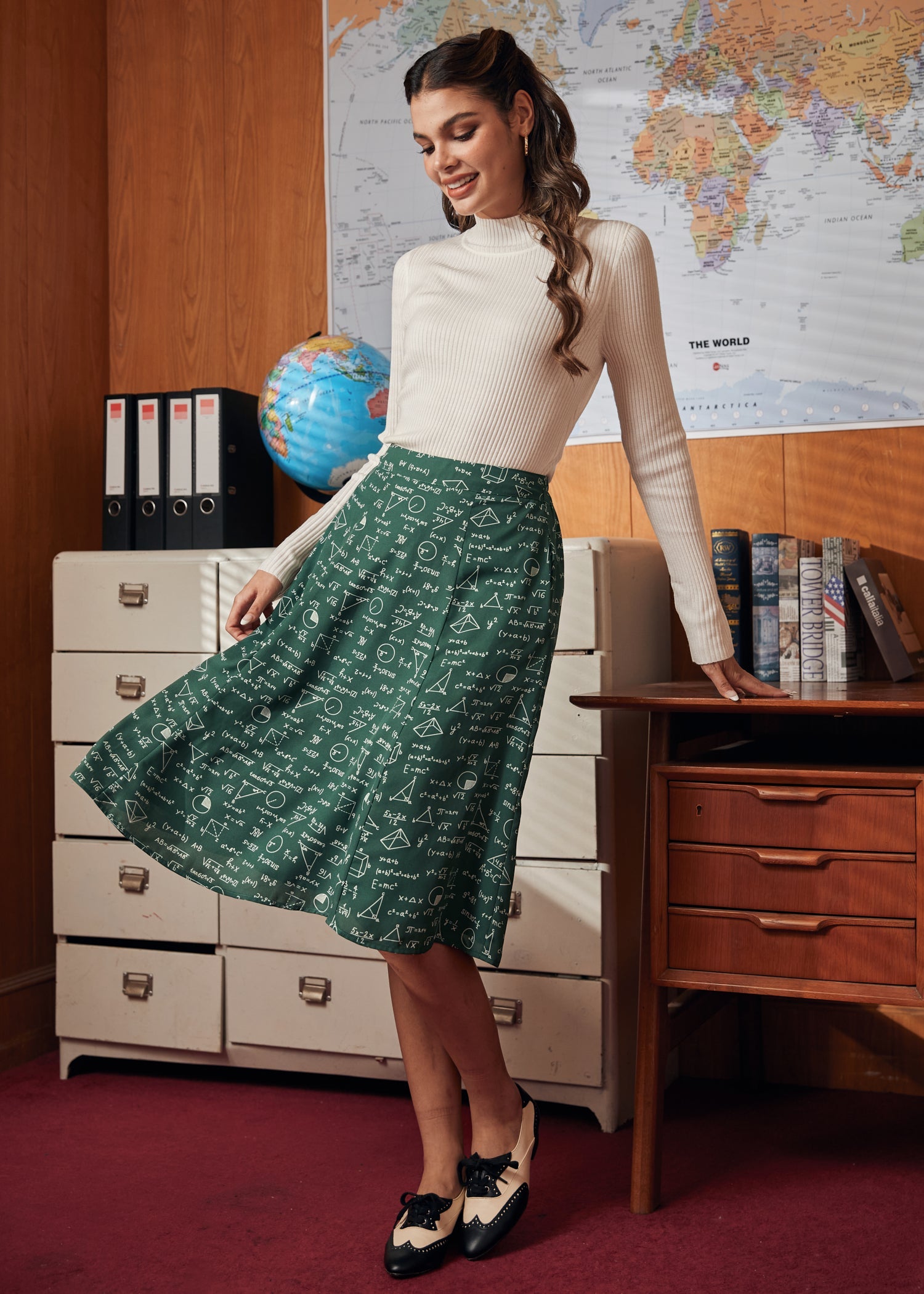 Math has never looked this stylish. The Go for Gored Circle Skirt from our ModCloth namesake label flatters with its flowy panels and twirl-ready silhouette. Featuring side pockets and a comfortable elastic back waist, this skirt is done up in our Trigonometry Time print — a chalkboard-inspired pattern of equations and geometric doodles. Perfect for pairing with blouses, sweaters, or cardigans when you’re solving life’s everyday problems (in style).
