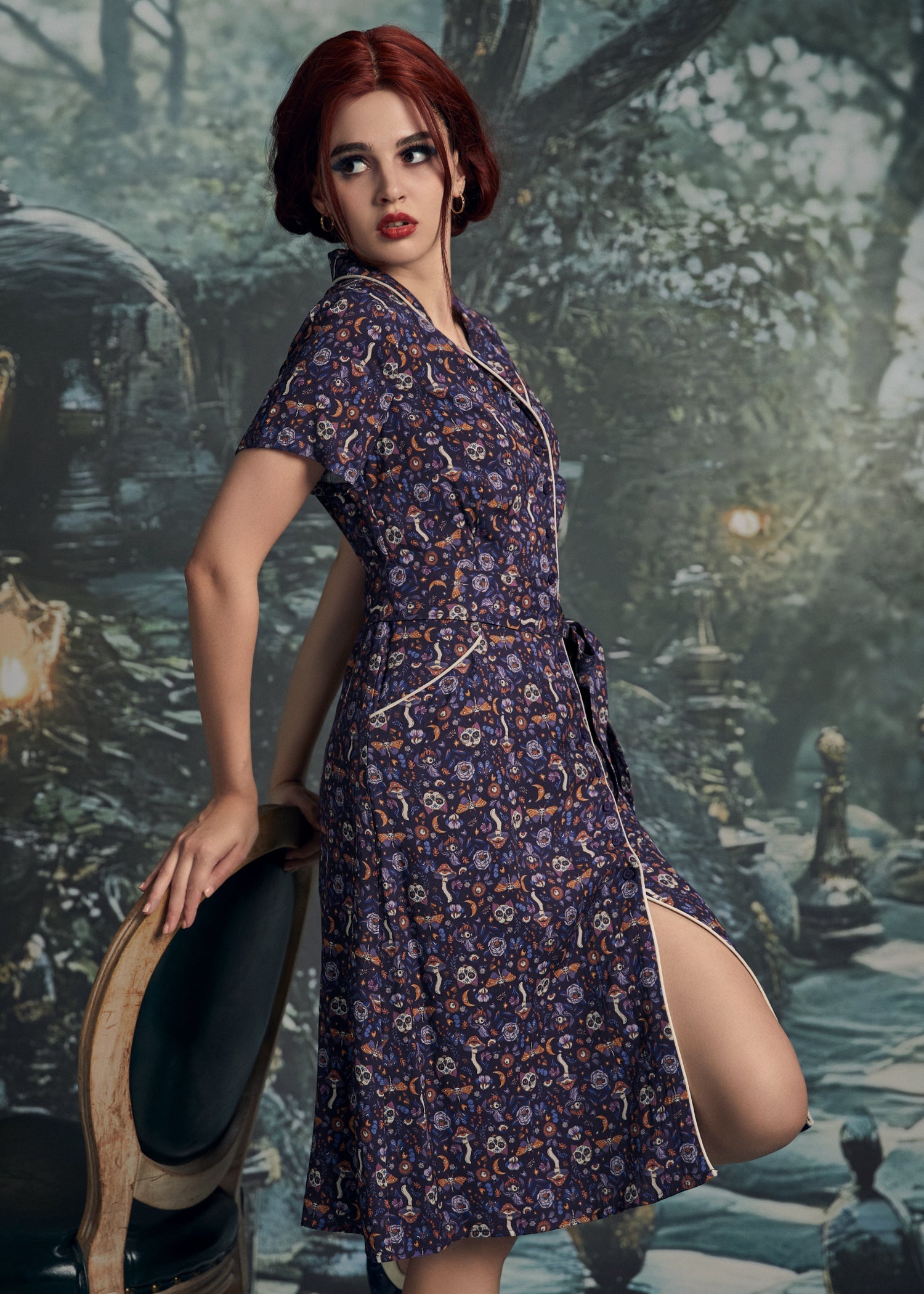 Introducing our vintage-inspired shirt dress from the ModCloth namesake label. This dress combines timeless charm with all-day comfort, boasting an elevated silhouette that exudes elegance. Crafted from a lightweight woven fabric, it effortlessly drapes over the body, channeling the charm of the 1940s and 1950s. The dress features a rounded notch collar, delicate corded piping, a full button-up front, a removable sash tie-belt, and front slant pockets at the hips. With its stylish easy-fit silhouette and the added allure of a floral print, this dress is a versatile and refined choice for any occasion, offering a touch of vintage-inspired sophistication to your wardrobe.