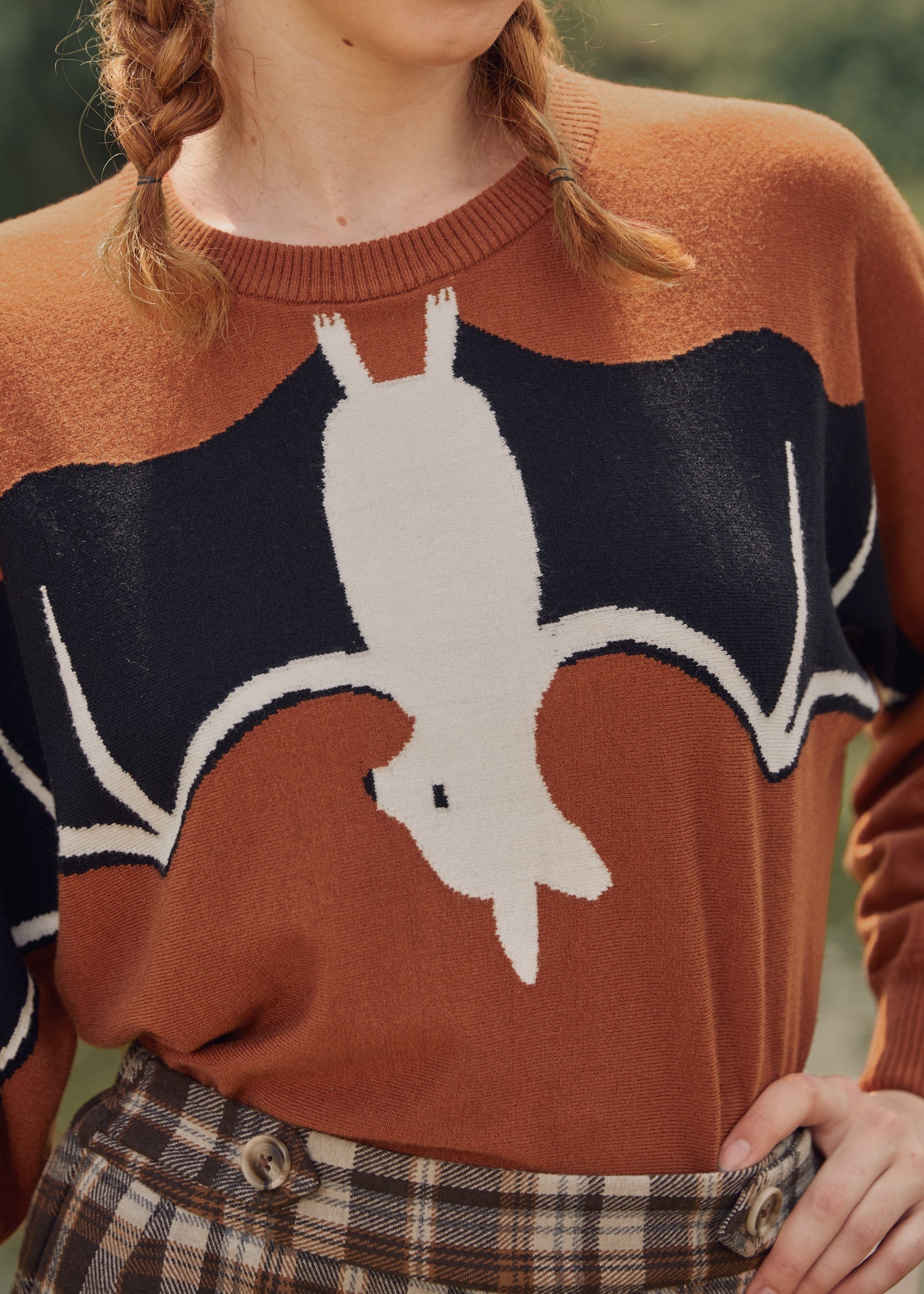 Taking batwing sweaters to a whole new level, we bring you this rusty red-hued pullover from our ModCloth namesake label. Boasting a black-and-white hanging bat graphic at the front yoke whose wings extend out across the long sleeves, this cotton knit sweater is as cute as it is clever! Featuring ribbed-knit detailing at the crew neck, cuffs, and hemline, you’ll stay cozy while you’re hanging out in this relaxed-fit Halloween-inspired sweater.