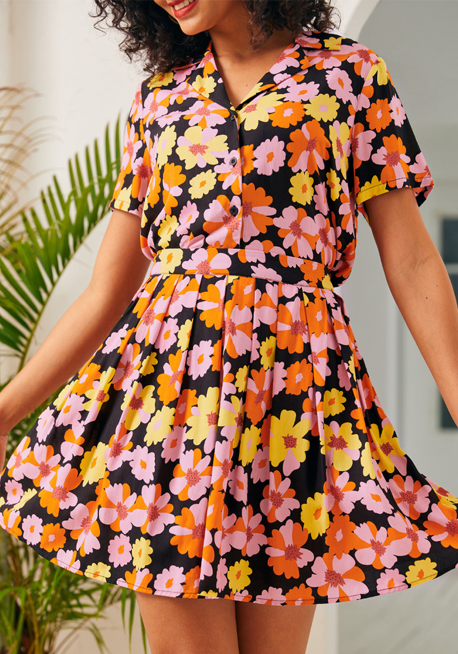 Elevate your retro fashion game with this vintage-inspired essential from our ModCloth namesake label. Designed in-house to add fresh new looks to your wardrobe, this skirt boasts a high waist with a button closure at the back, fully lined to ensure comfort and elegance. Crafted from sumptuous woven rayon challis, this skirt features a captivating black floral print that adds an extra layer of charm to the design. The pleated, flowy silhouette adds a touch of feminine grace, while the versatility of the skirt promises endless styling possibilities. Ideal for attending creative workshops, exploring local markets, or enjoying a weekend retreat, this skirt is perfect for dressing up or down, inspiring you to explore your creative side, and make a statement wherever you go.