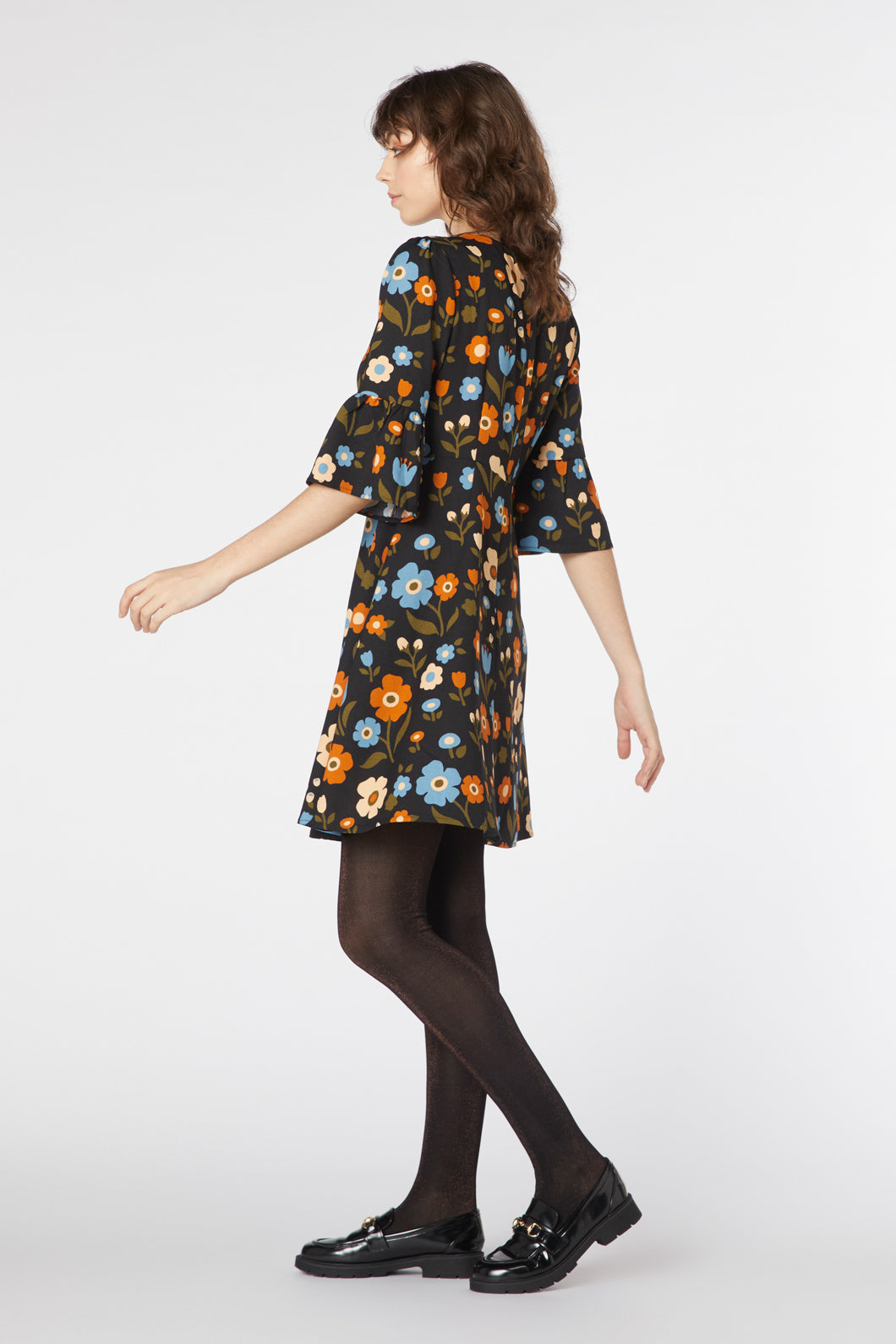 Blossom boldly in the Ingrid Floral Dress, where retro Scandinavian charm meets modern flair with a burst of audacious buds and blooms. Crafted from a lightweight polyester-elastane blend, this dress clings in all the right places with its waist-fitted silhouette, then playfully flares out into a skirt that smiles with every step. Mid-length sleeves boast delightful flounces, adding a dash of whimsy to your wrist twirls. Falling gracefully to the knee, Ingrid makes a statement that’s as timeless as it is floral. Perfect for sashaying through brunch or brightening a boardroom—Ingrid turns any day into a vivid garden party.