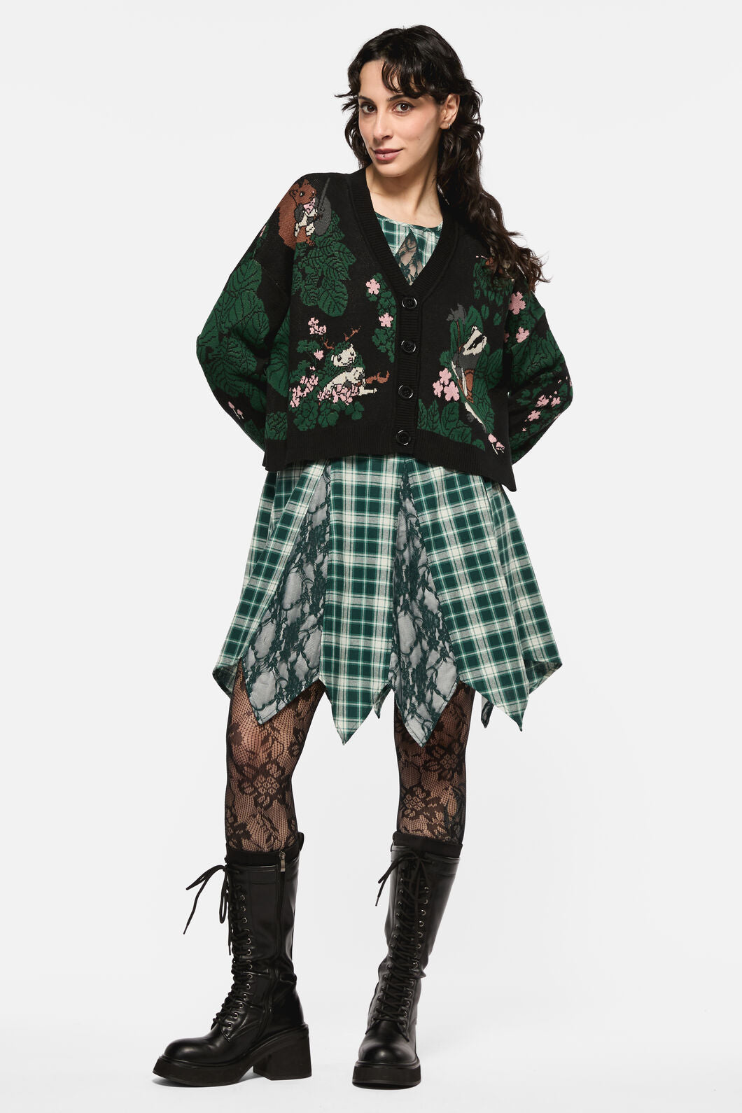 Step into your forest fantasy with the Keeper of the Woods Graphic Knit Cardigan by Black Friday. Whether you're gathering herbs for a witch's brew or just channeling cozy LARP vibes, this soft cotton knit is your go-to for magical adventures. With a relaxed fit and all-over mystical artwork, it’s a layering piece made for woodland wanderers and modern-day enchantresses alike.