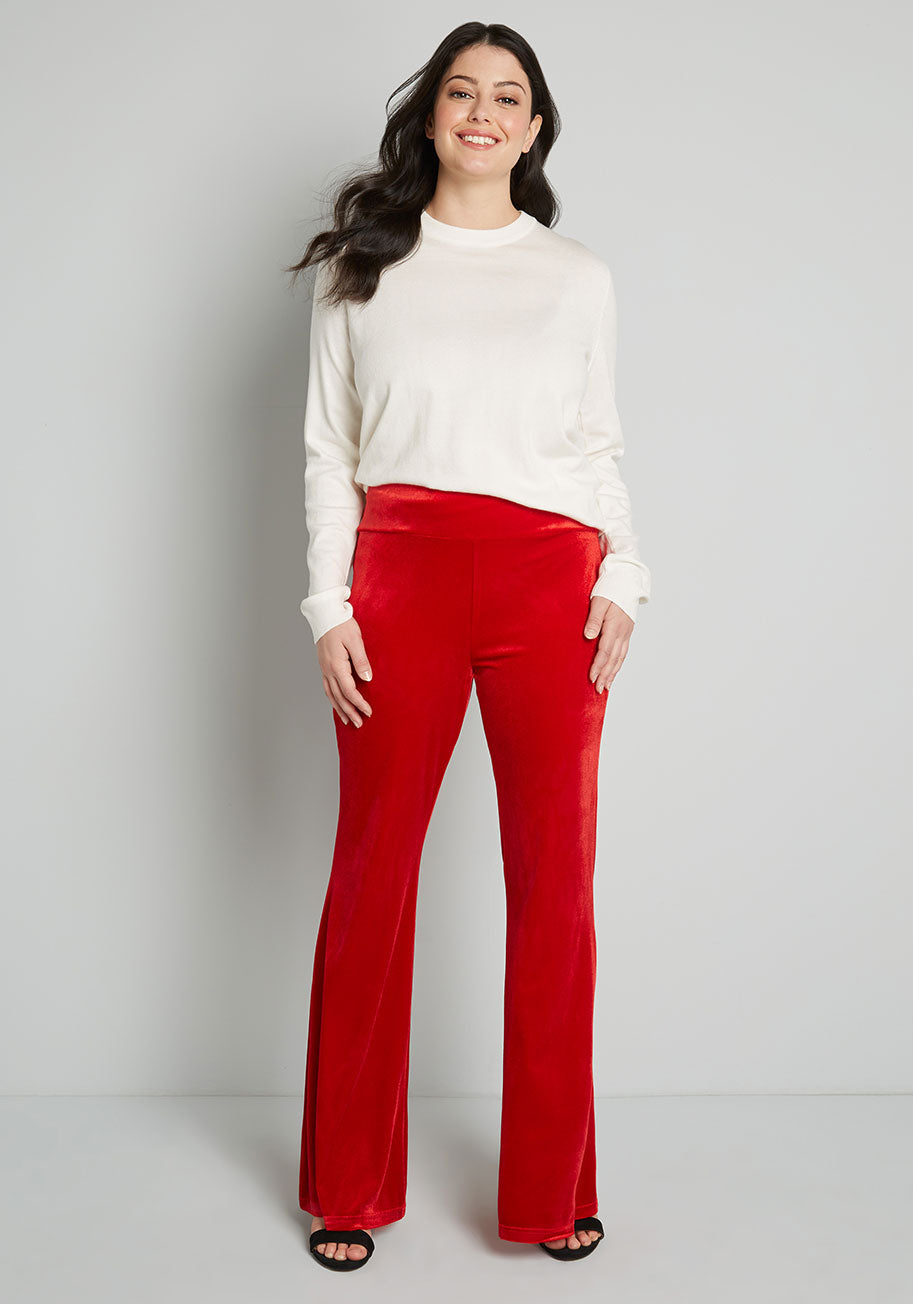 We’ve got nothing but love for these wide-leg pants from our ModCloth namesake label that perfectly balance luxe-level style with lounge-quality comfort! Made from a sumptuous and stretchy red velvet fabric that’s perfect for the holidays and beyond, these elevated pull-on pants boast a retro-chic, high-rise waist and a super flare silhouette that is so much fun to style.