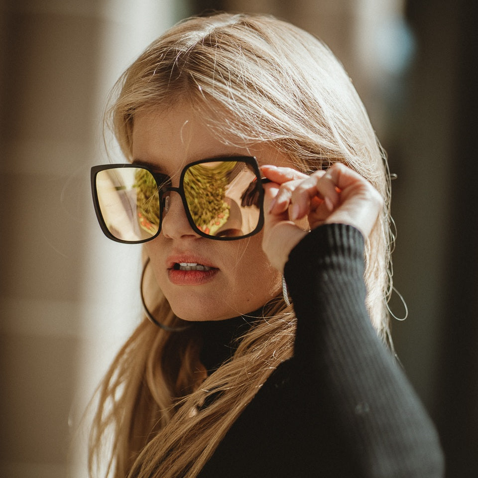 Color: Rose Gold Mirror Lens, Matte Black Metal Frame