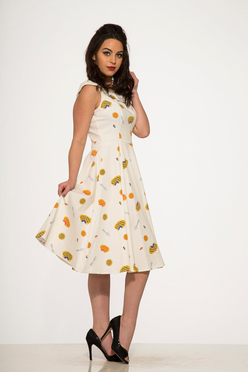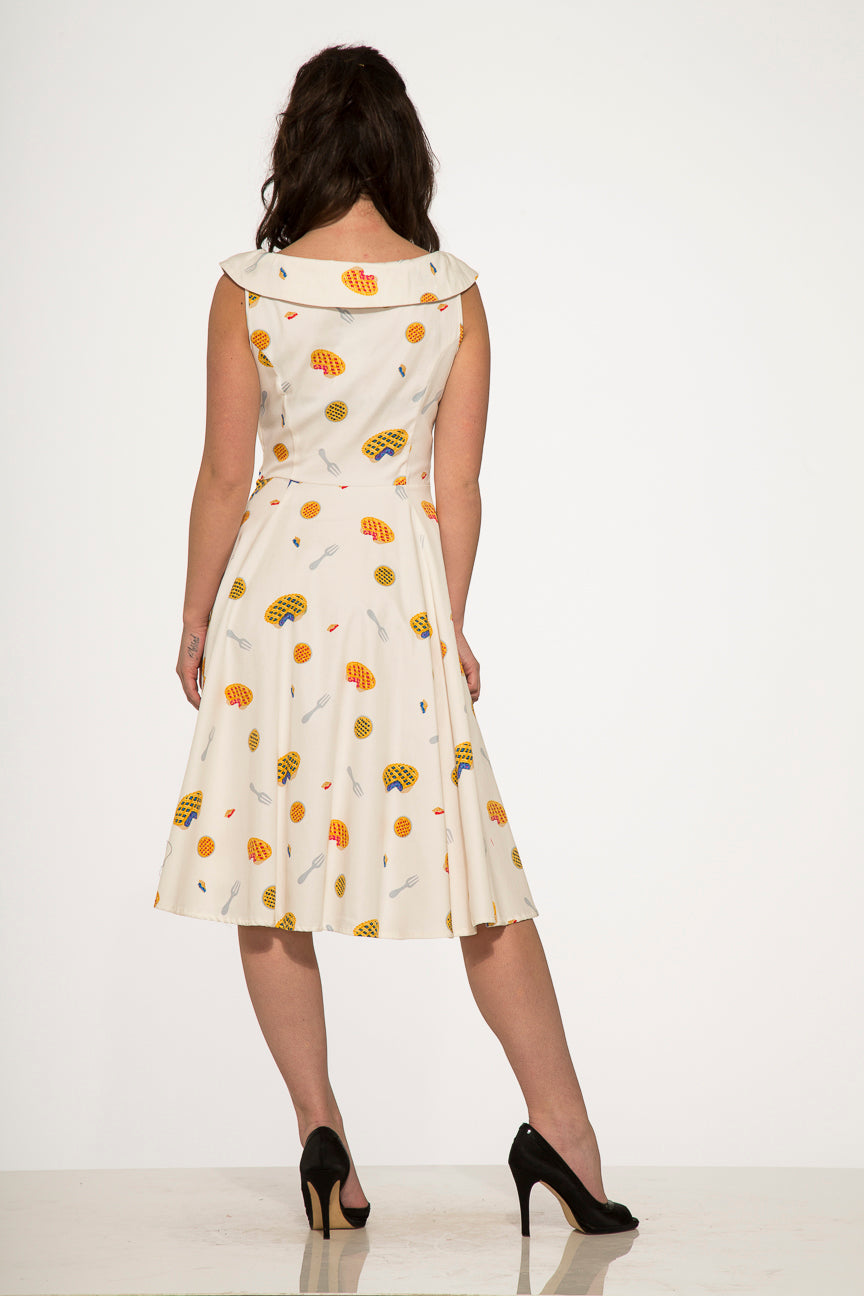 Serve up a slice of retro whimsy with the Orchid Bloom Pie Dress in Off White. Adorned with playful pie and utensil motifs in warm, sunny hues, this charming swing dress is the perfect blend of fun and sophistication. The soft cotton-spandex blend ensures a flattering fit and just the right amount of stretch, while the side zipper makes it a breeze to slip on. Whether you’re off to a picnic or a casual garden gathering, this dress brings a delightful pop of personality to your wardrobe.