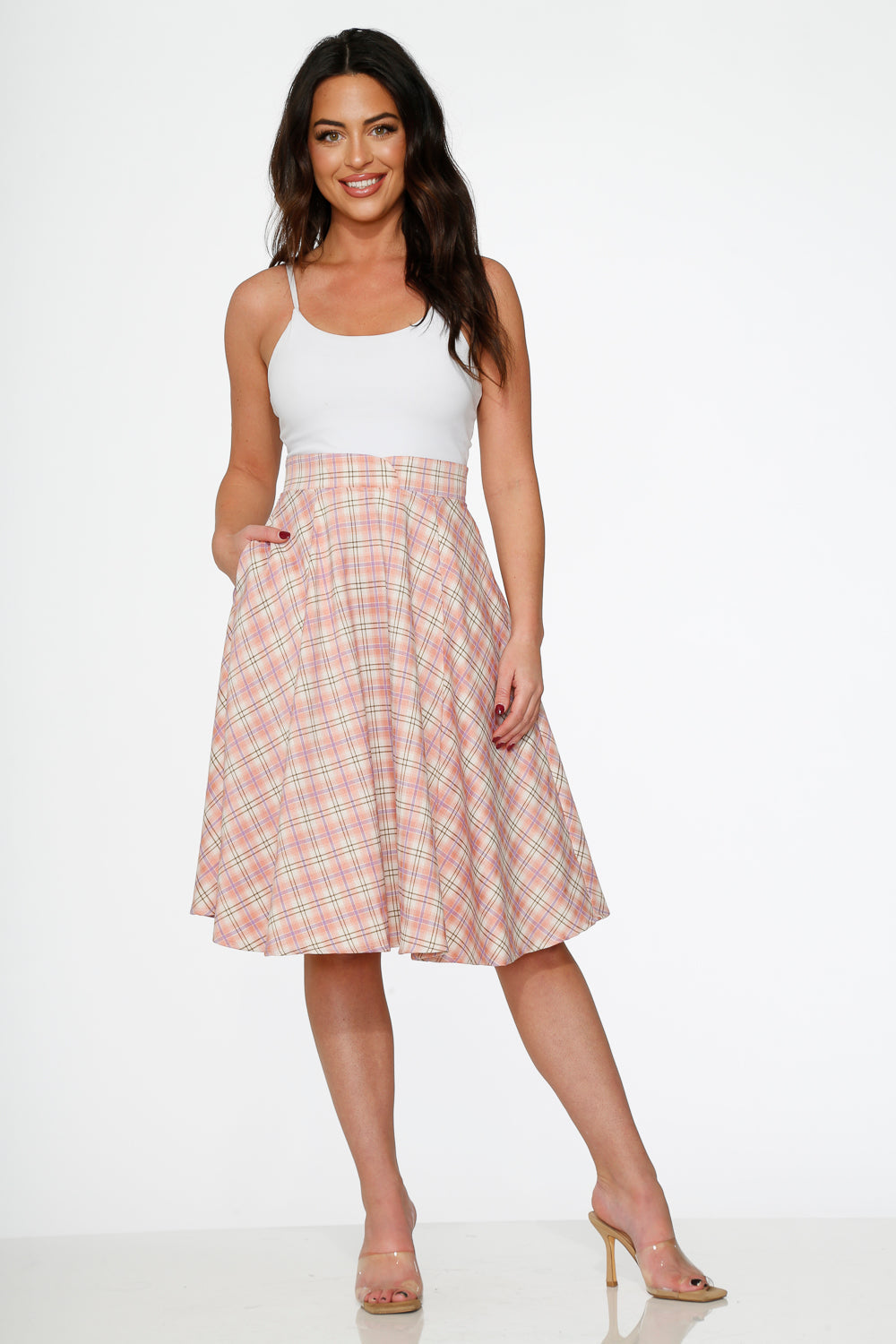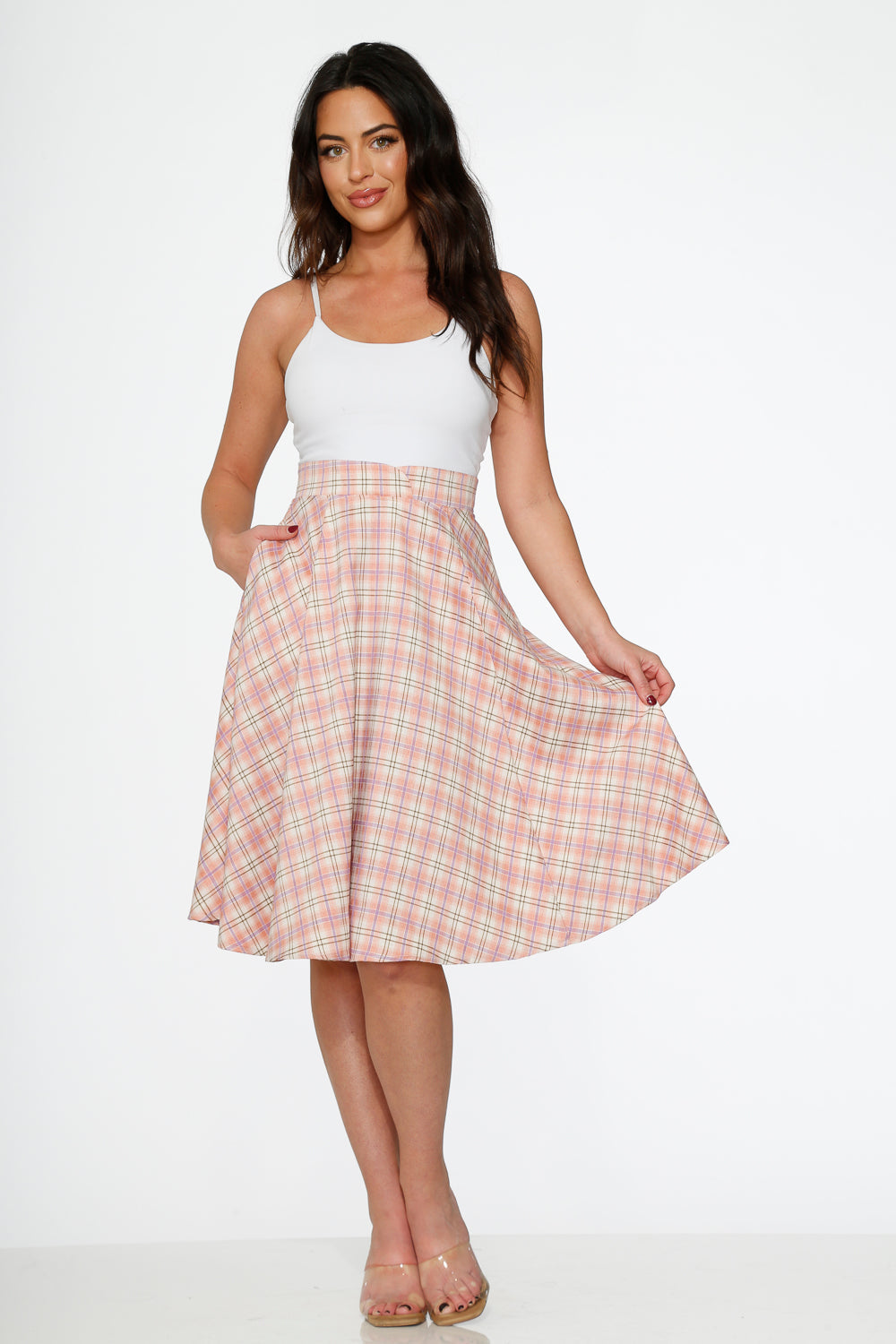 Pink Plaid Swing Skirt