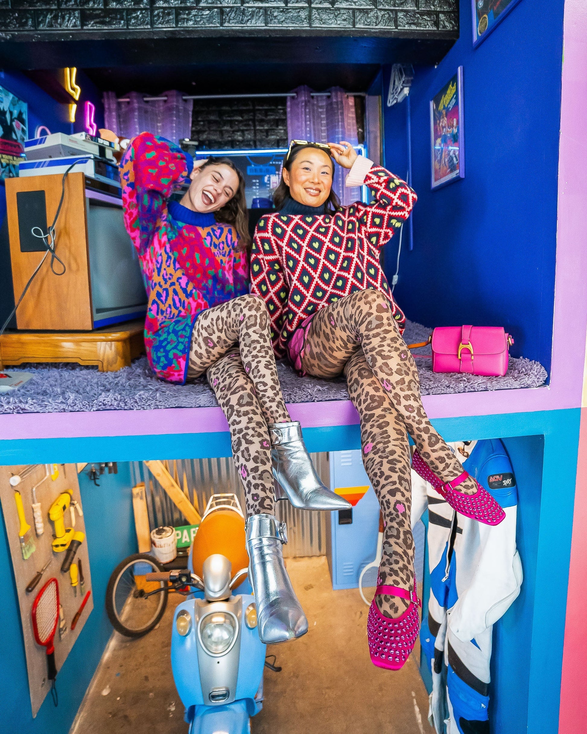 Bring the drama with a sheer 80's style twist on animal print. Our Pink Pop Leopard Print tights take a classic leopard print and dial it all the way up with pops of vibrant pink, bold contrast spots, and a sheer base that lets your wild side shine. Perfect for layering under oversized knits, retro-themed looks, and statement street style.