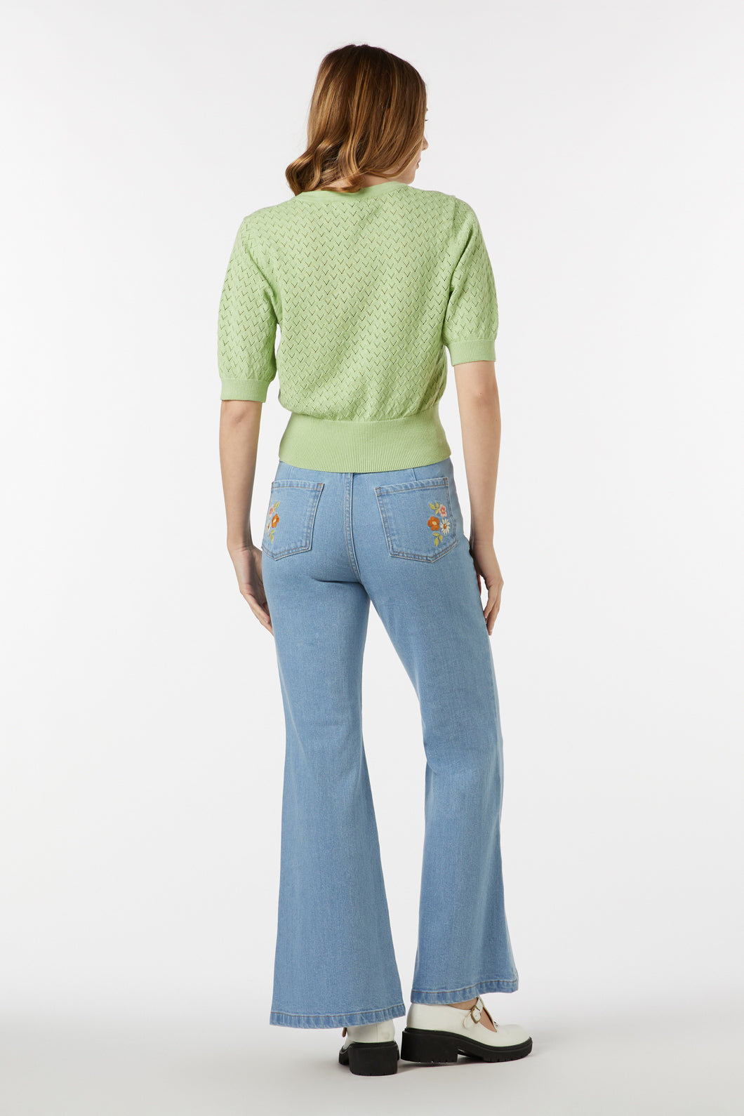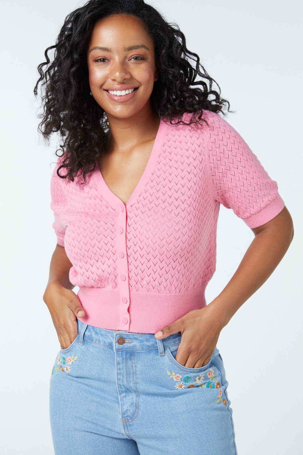 Welcome a breath of fresh whimsy into your wardrobe with the Dainty Crop Cardigan from Princess Highway. Lovingly crafted from organic cotton yarn, this cardigan wraps you in comfort and charm. Its dainty Pointelle design weaves a tale of playfulness and grace, perfect for adding a touch of fancy to any ensemble. The delicate neckline flows into a button through the front, allowing for versatility in wear—button up for a refined look or leave it open for a casual flirtation. Short cuffed sleeves add a quaint touch, and the close-fit waist rib ensures the cardigan hugs you just right, creating a flattering silhouette. Whether donned in playful pink or gorgeous green, this cardigan is an effortless choice for picnics in the park or leisurely strolls through your favorite part of town.