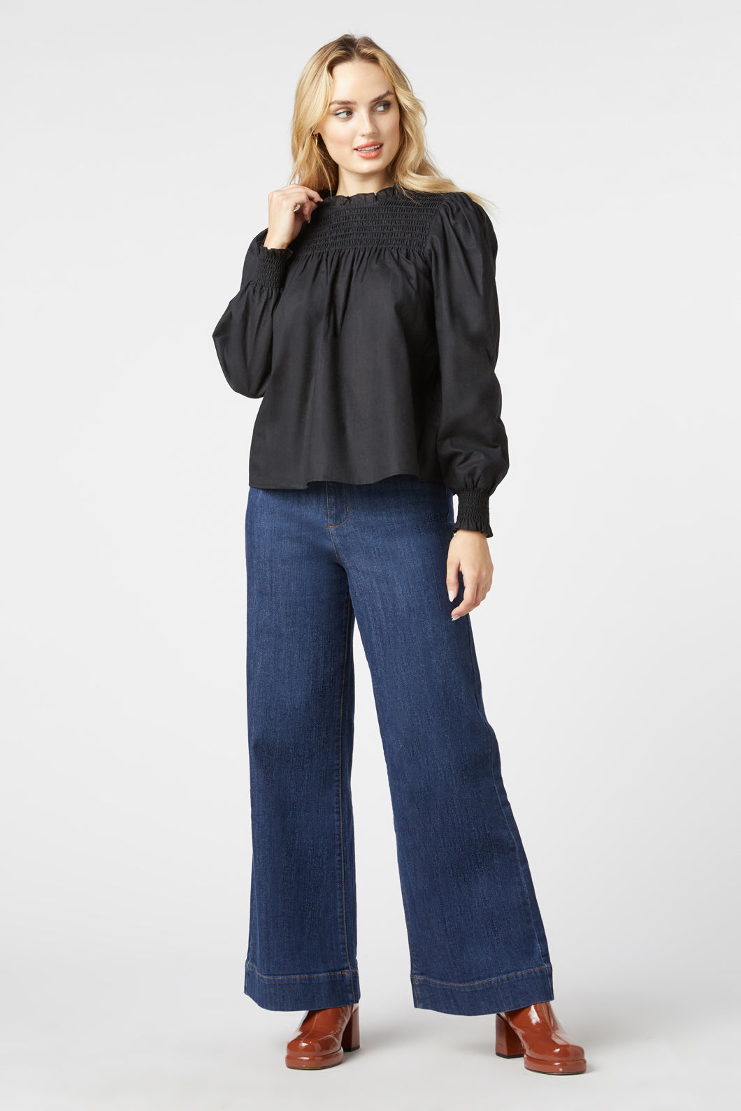Slip into the delightful embrace of the Long Sleeve Shirred Top from Princess Highway, where comfort waltzes hand-in-hand with whimsy. This top is a dance of texture with shirring gracing the front chest above the bust and hugging the cuffs, adding a playful rhythm to the garment's design. The relaxed fit through the body ensures ease of movement, making it a friend to laughter-filled days out or serene moments in your favorite nook. Finishing at the hips, it strikes a harmonious balance between carefree and cultivated. The linen cotton blend offers a breathable caress against the skin, and with the handy zipper at the back, slipping in and out is a cinch. Choose between the serenity of cream or the depth of black, and let this shirred top be a versatile player in your wardrobe ensemble, equally fitting for a creative workshop or a garden fête.