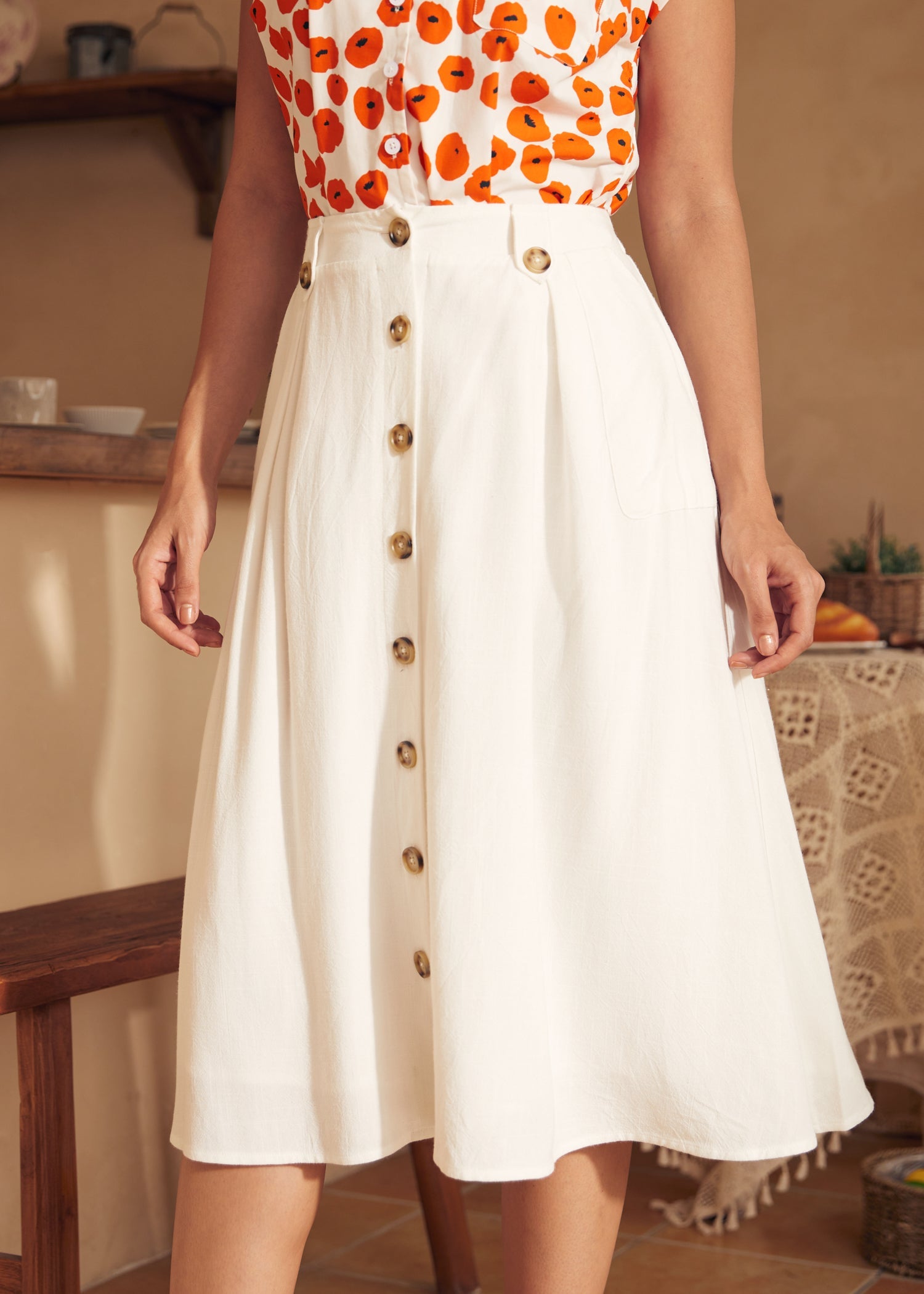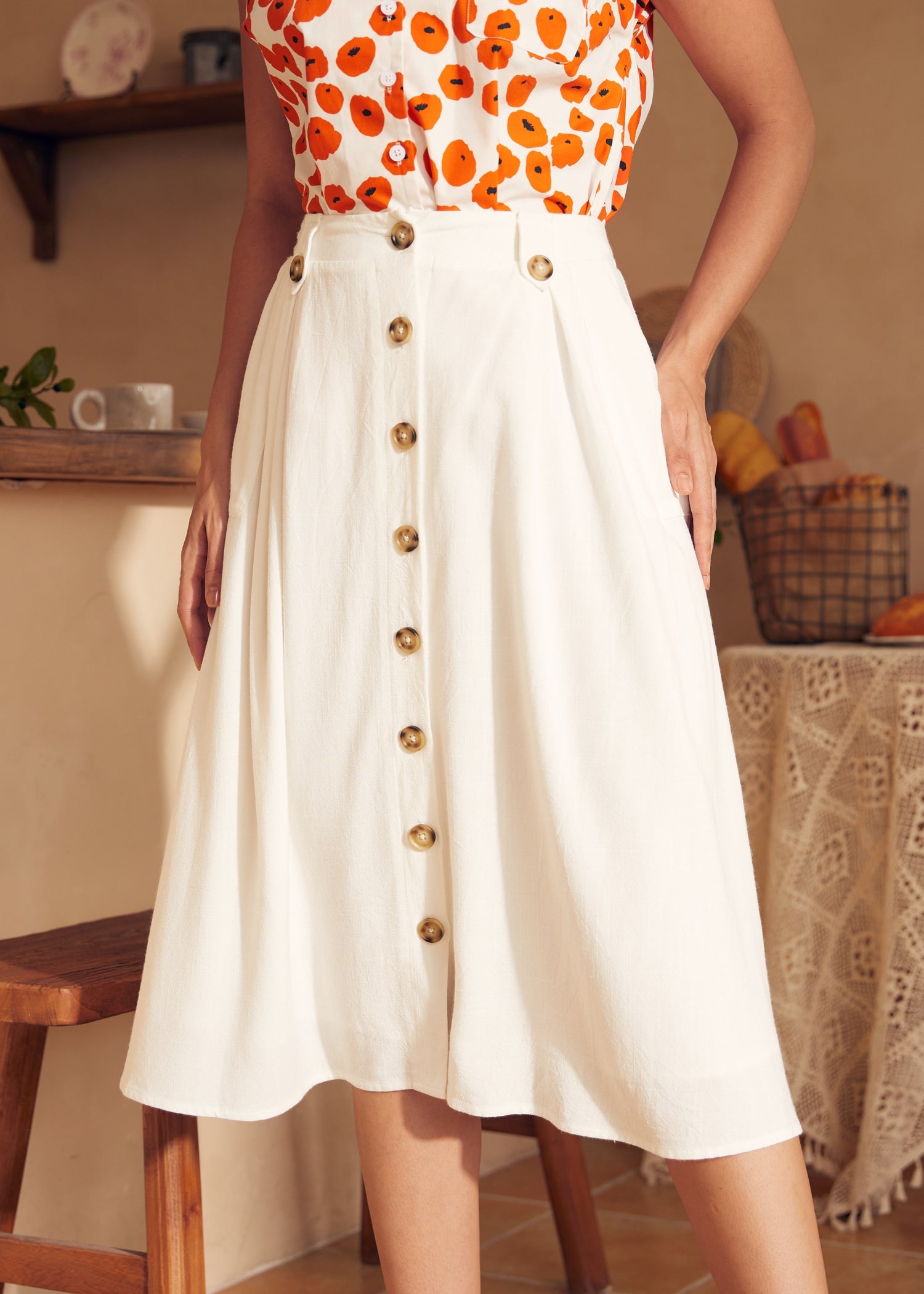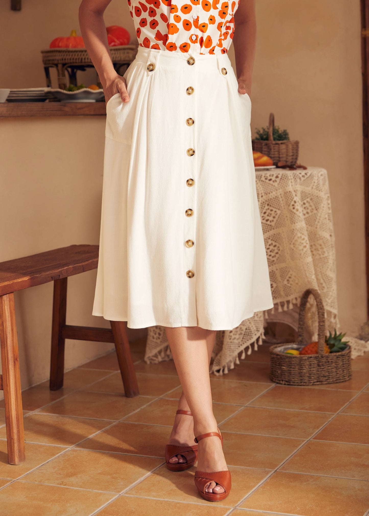 Sunwashed days call for timeless style—enter the Press de Provence Skirt from our ModCloth namesake label. Crafted in breathable white linen with crisp pleats and tabbed waist detail, this midi brings a dash of retro French charm to your warm-weather wardrobe. Perfect for market strolls, picnic dates, and daydreaming under the sun.