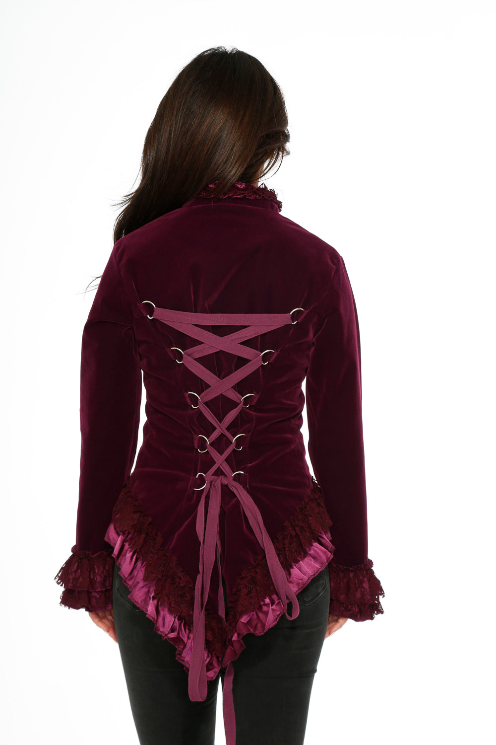 Drama, meet decadence. The Orchid Bloom Purple Gloria Velvet Tailed Jacket is a show-stopping piece made for grand entrances and unforgettable exits. With its rich velvet texture, corset-style front closures, and ruffled trim at the cuffs and hem, this jacket brings Victorian elegance into the modern spotlight. The tailored fit and dramatic tail add the perfect touch of flair.