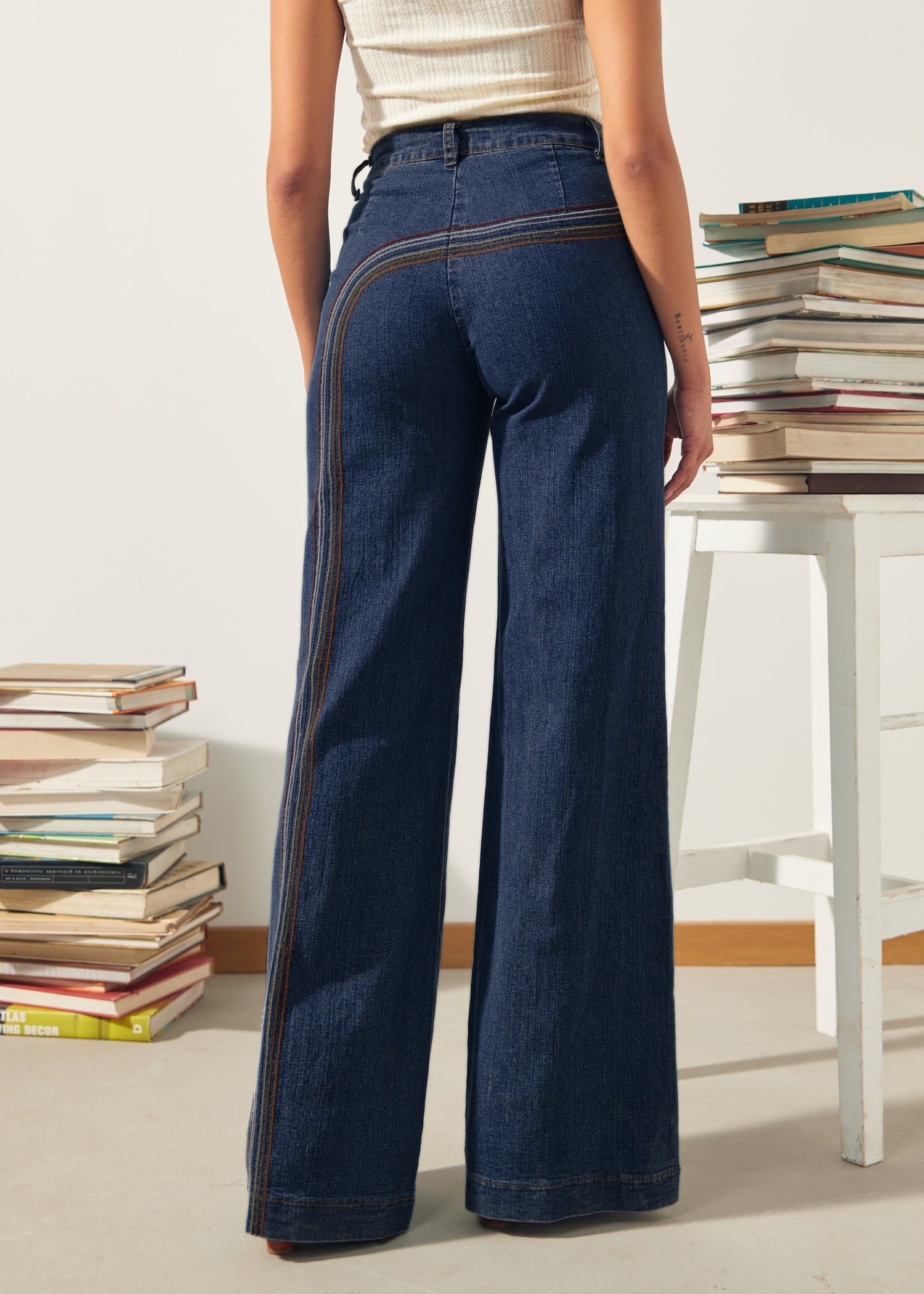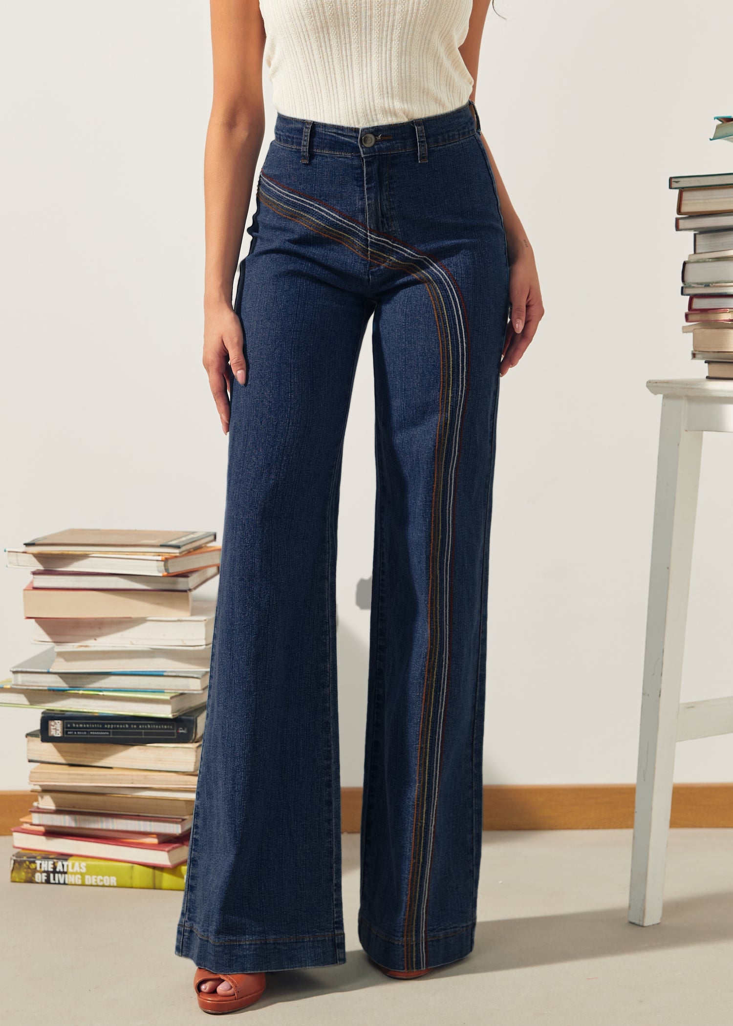 Channel the ease and craftsmanship of the 1970s in these rainbow-adorned, vintage-inspired jeans from our ModCloth namesake label! Crafted from a low-stretch denim these medium blue-hued pants are cut in a classic high-waisted, wide-leg silhouette that features a zip fly and button closure, along with Roy G Biv-hued embroidery from front to back!