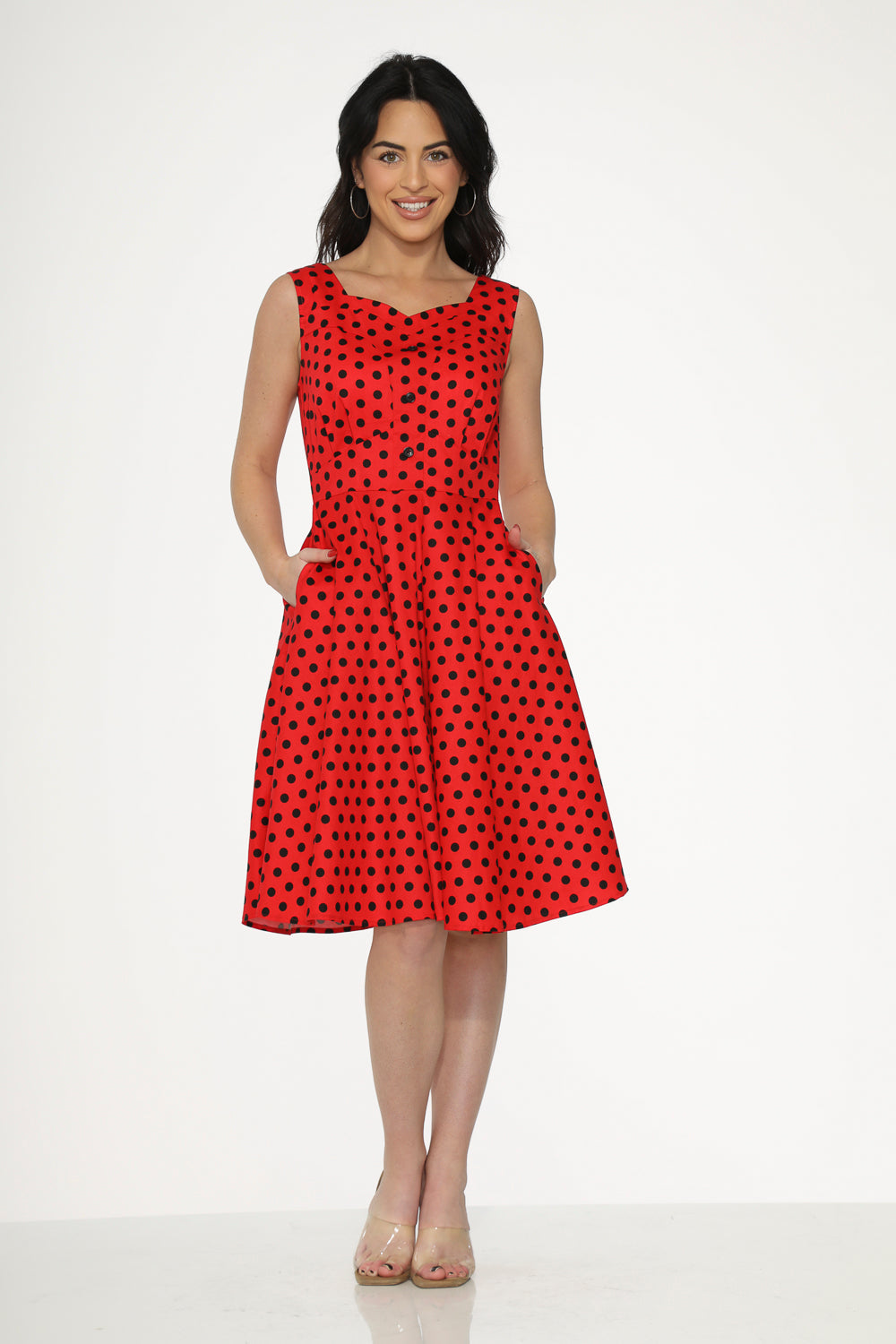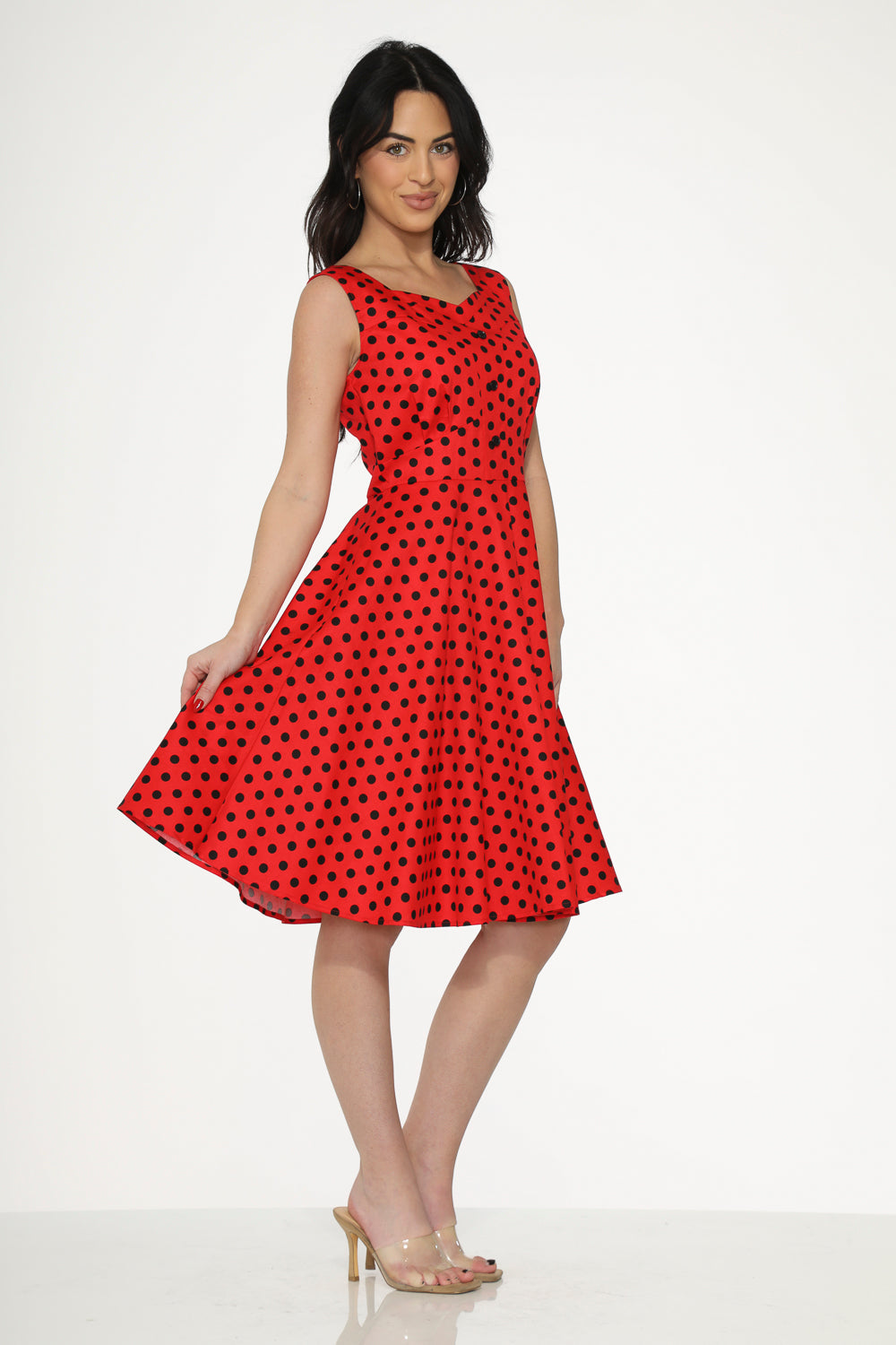 Timeless, bold, and effortlessly chic—Orchid Bloom’s Red & Black Polka Dot Swing Dress brings vintage charm to any occasion. With its striking red hue and classic black polka dots, this dress is designed for twirls, compliments, and endless elegance. Whether you're heading to a retro-inspired soirée or adding a little fun to your everyday wardrobe, this dress is a standout choice.