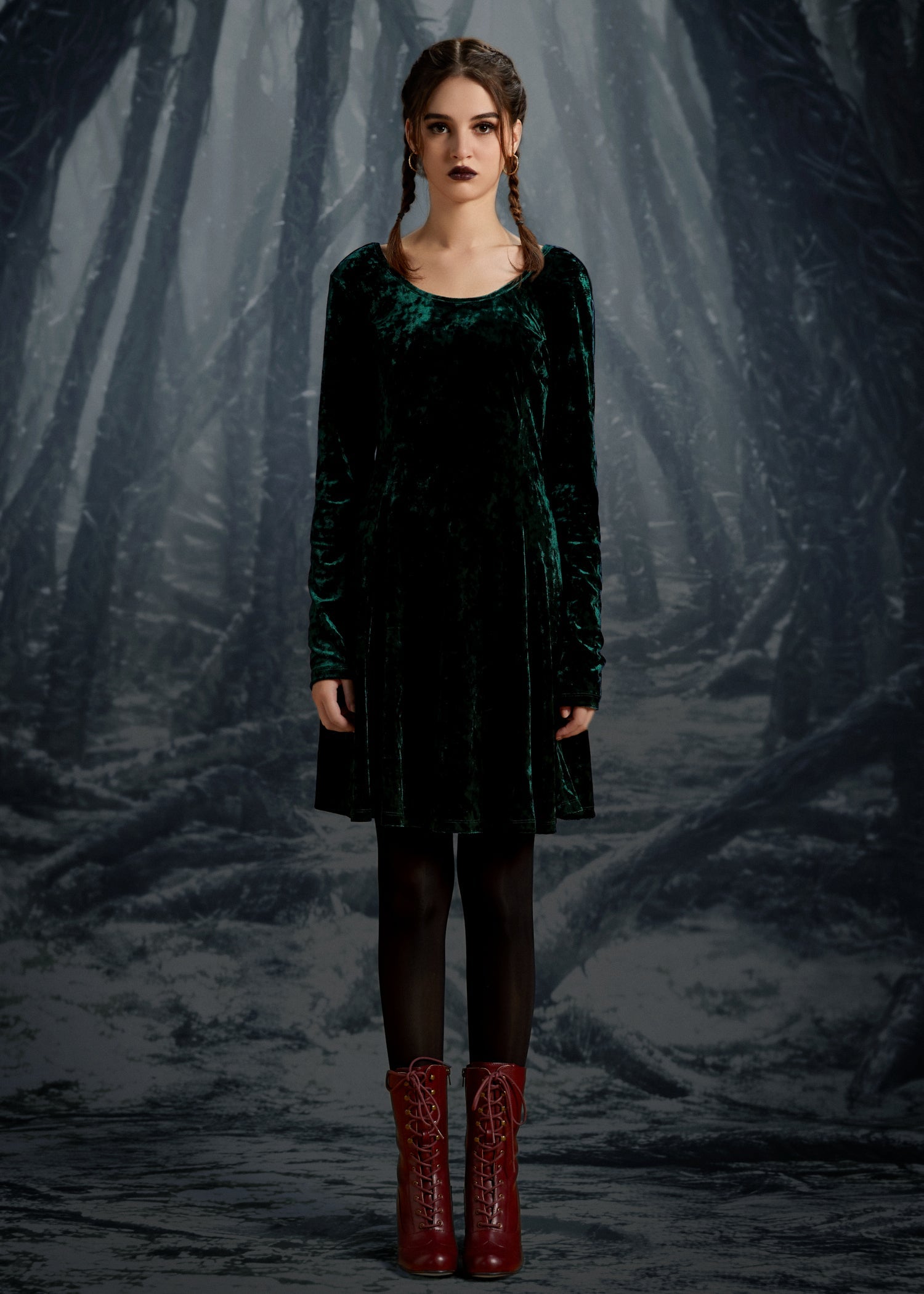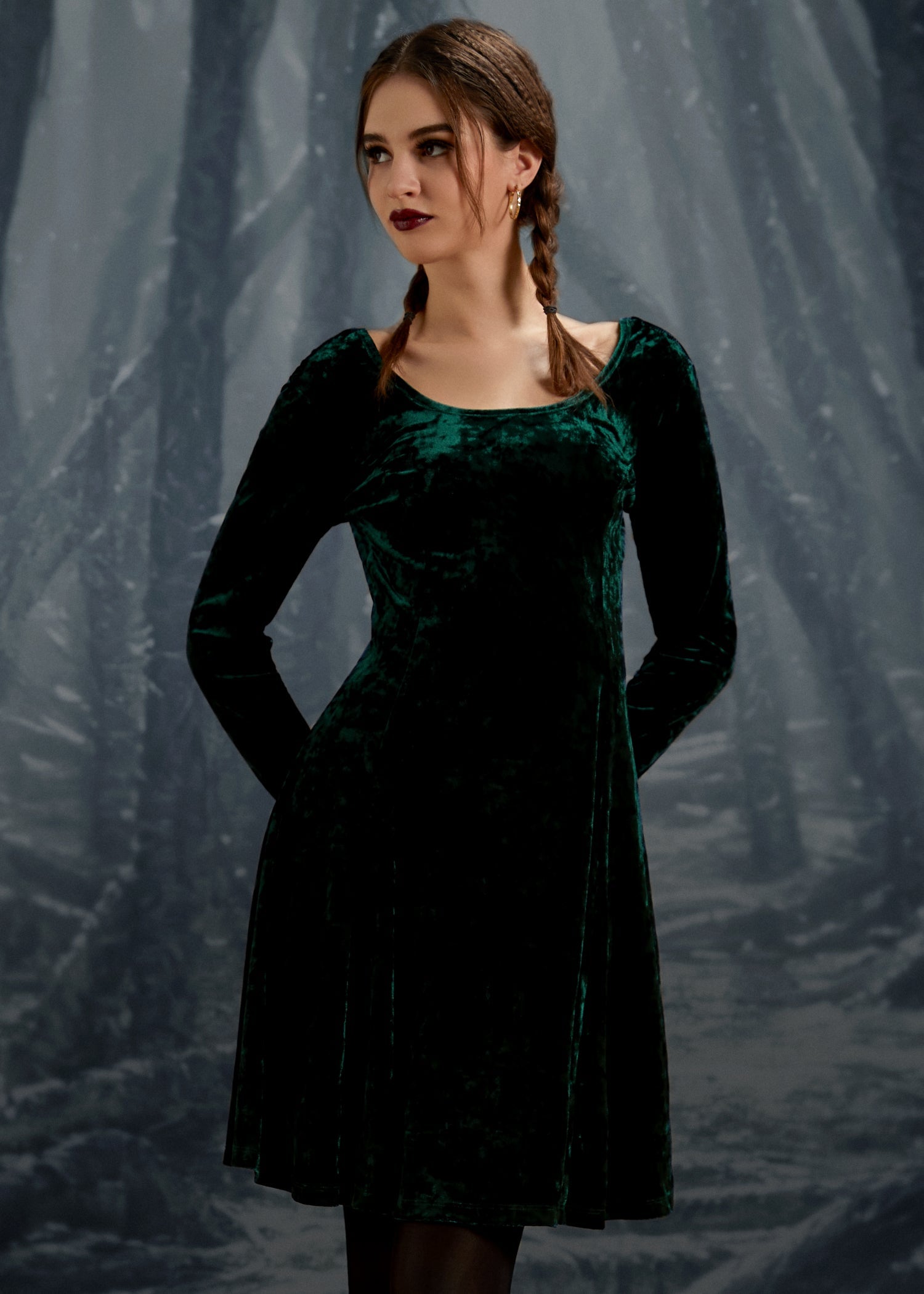 From our ModCloth namesake label, the Retro Radiance Fit & Flare Dress in mystic moss is a must-have addition to your winter wardrobe. Its knit fabric with medium stretch hugs your figure comfortably, while the scoopneck design adds a timeless elegance. The enchanting green hue complements the winter palette, making it ideal for seasonal parties or cozy dinner dates. Its versatile style ensures you'll turn heads wherever you go.