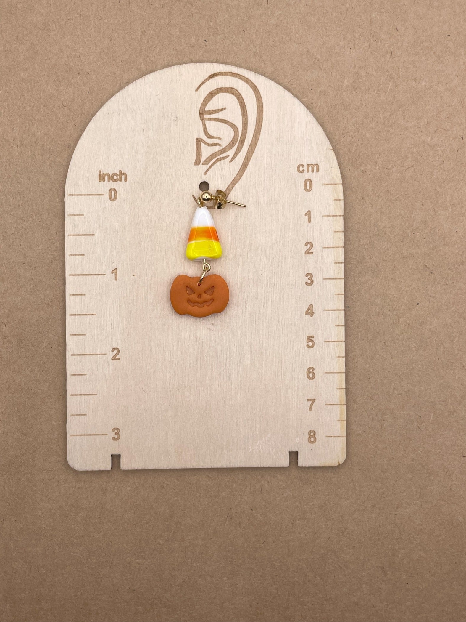 Add a little spooky charm to your outfit this fall with these handmade, dangly Halloween earrings! Carefully crafted from lightweight polymer clay, these fun and festive earrings feature a playful "trick or treat" theme—perfect for Halloween parties, cozy fall days, or a witchy trip to Salem. Great for gifting or treating yourself!