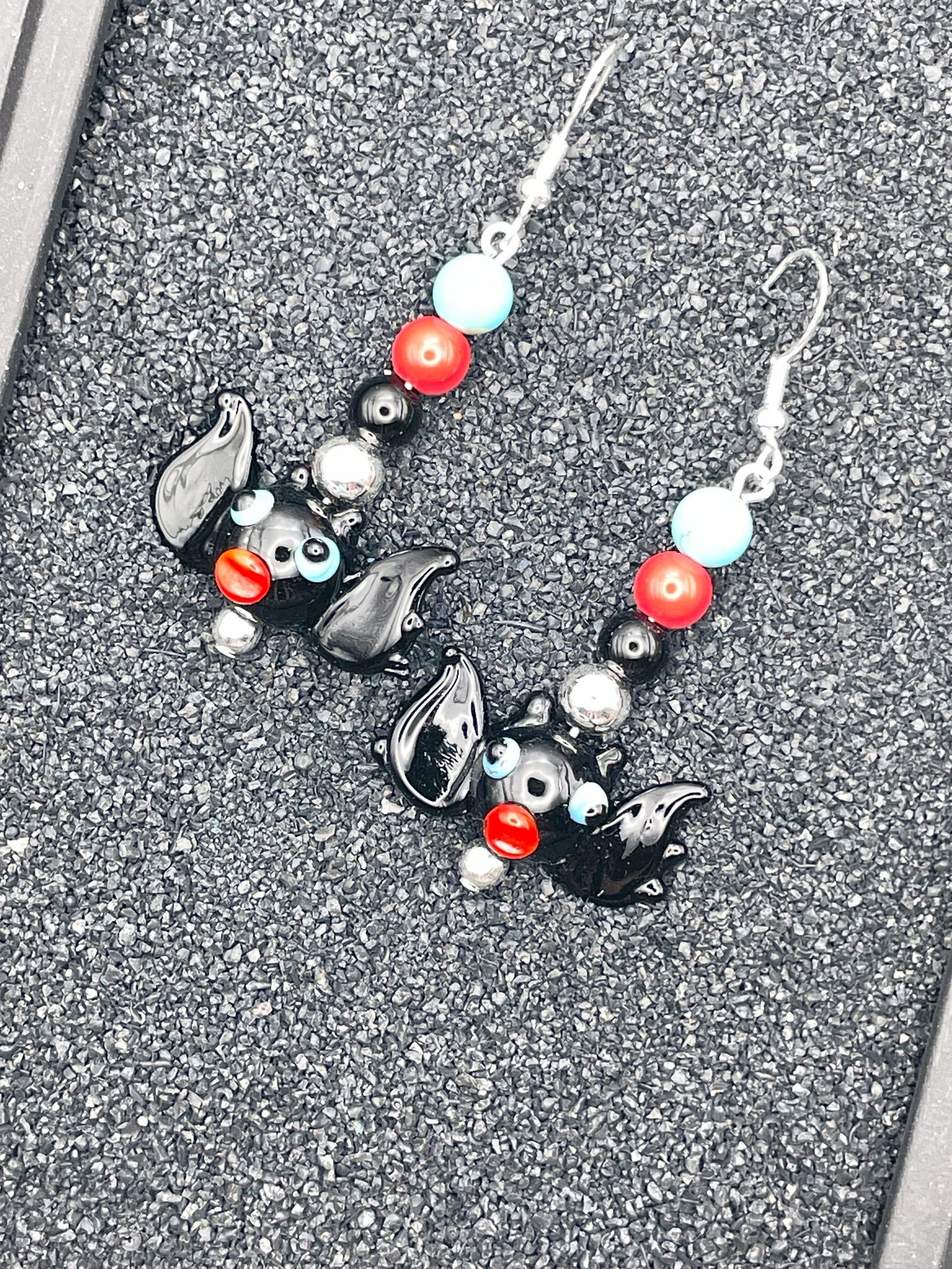 Add a little spooky charm to your outfit this fall with these handmade, dangly Halloween earrings! Carefully crafted with glass beads, these fun and festive earrings feature a playful "trick or treat" theme—perfect for Halloween parties, cozy fall days, or a witchy trip to Salem. Great for gifting or treating yourself!