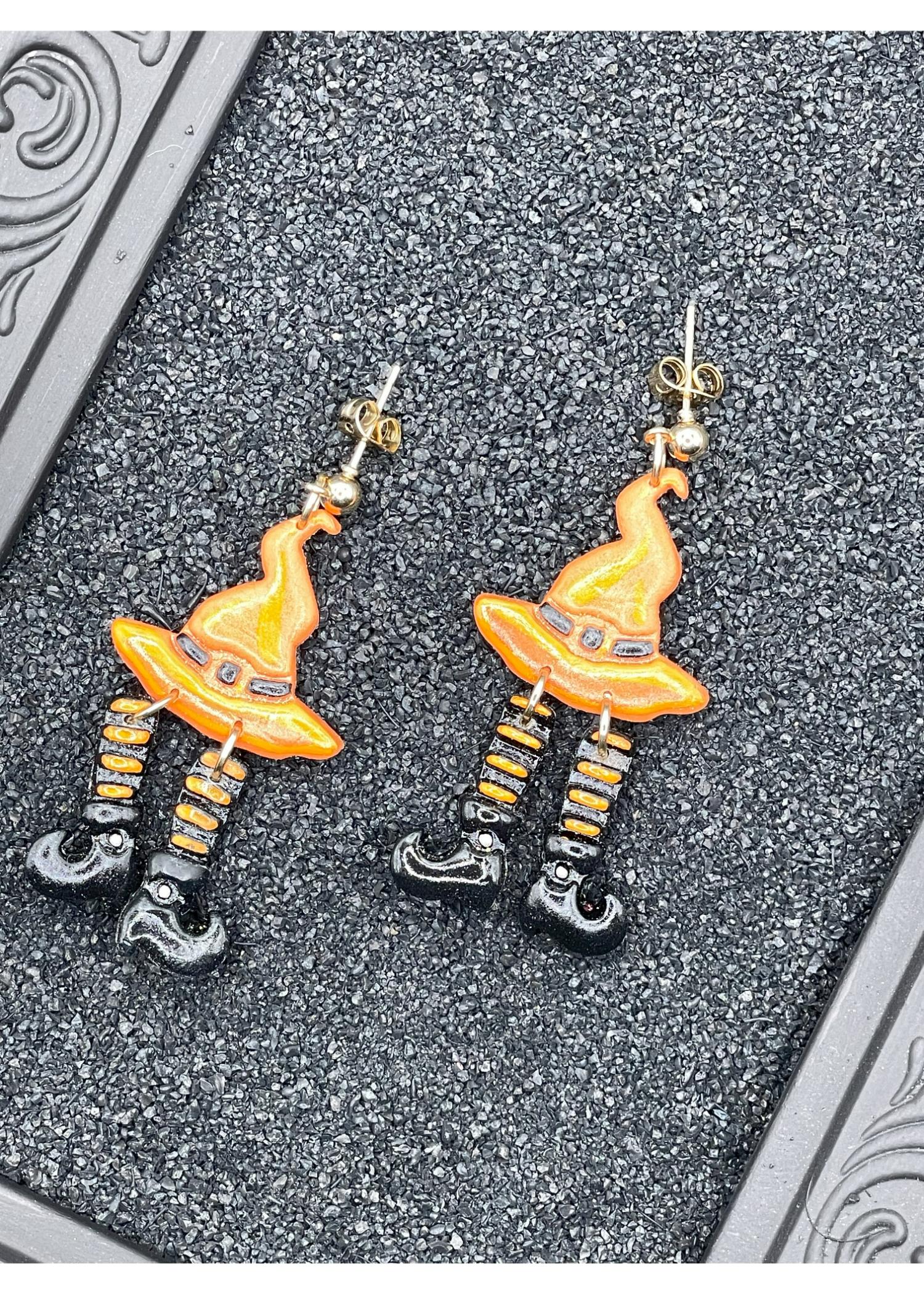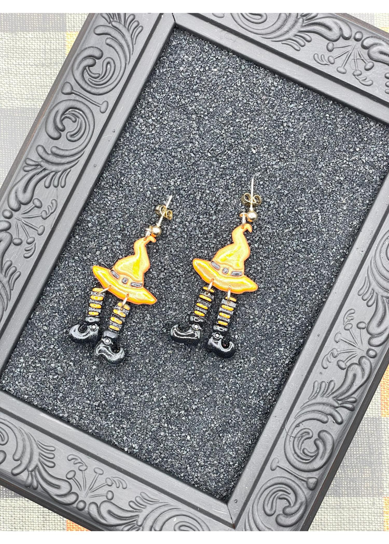 Add a little spooky charm to your outfit this fall with these handmade, dangly Halloween earrings! Carefully crafted from lightweight polymer clay, these fun and festive earrings feature a playful "trick or treat" theme—perfect for Halloween parties, cozy fall days, or a witchy trip to Salem. Great for gifting or treating yourself!
