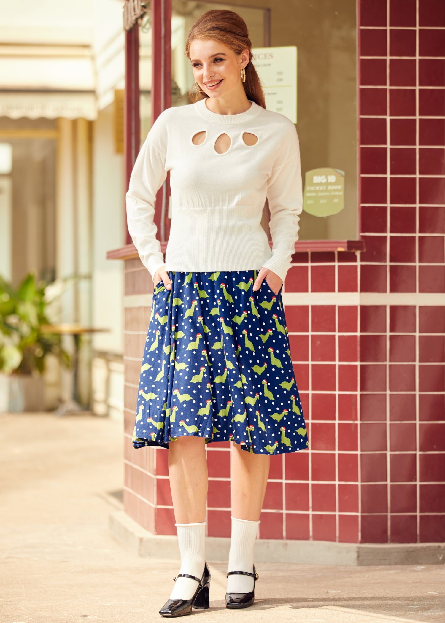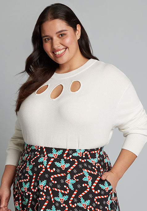 Adorably layerable with a pop of color underneath and oh-so-alluring on its own, this versatile ivory sweater from our ModCloth namesake label will complement a variety of ensembles. Whether you're feeling a bit coquettish or maybe a tad sassy, this knit top will represent with its three almond-shaped keyhole cutouts at the chest, long sleeves, crew neckline, and a stylishly wide, finely ribbed hemline that creates a figure-flattering silhouette.