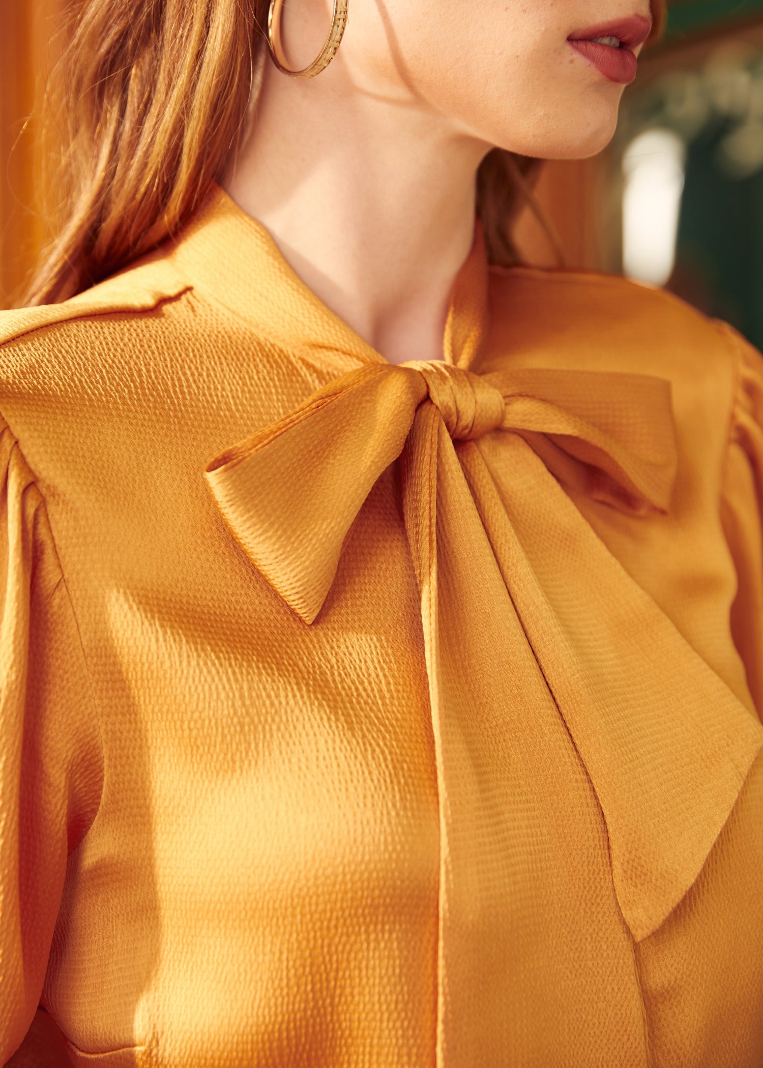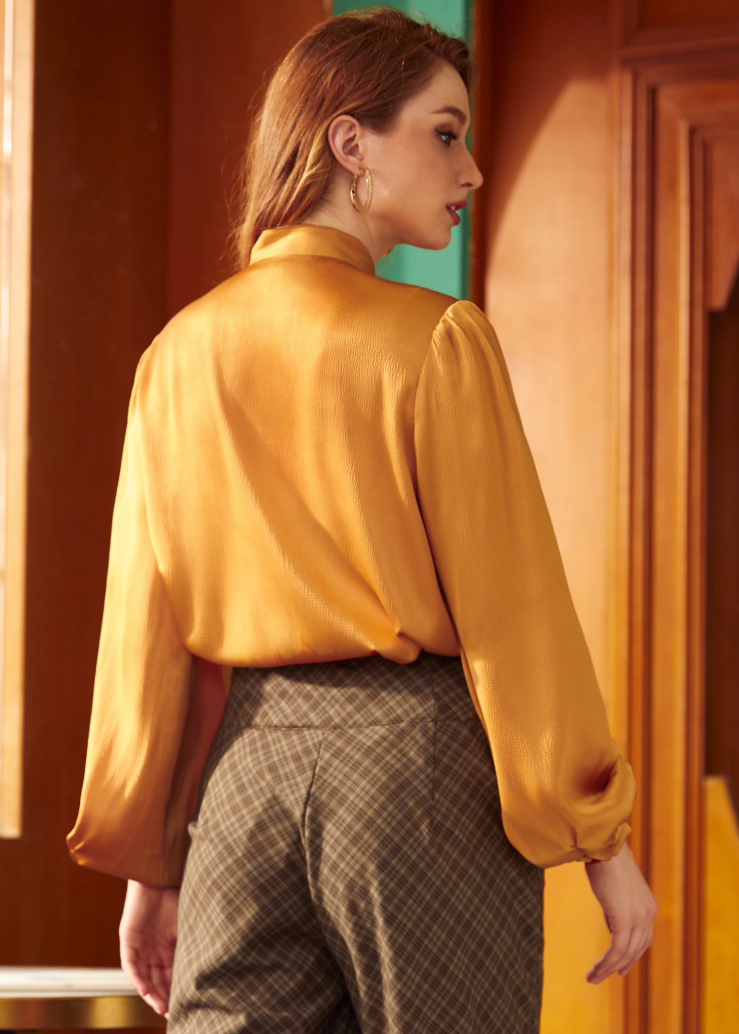 Launch into fall with the golden flair of the Space Race Bow Blouse from our ModCloth namesake label. This resplendent gold, woven top features a charming bow and functional buttons, offering pull-over ease. It's suited for a day at the office or an evening at the art gallery.
