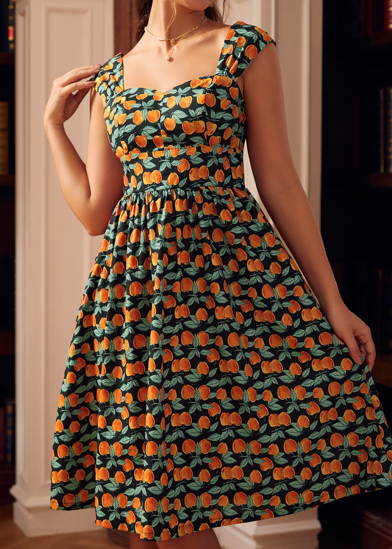 From our ModCloth namesake label comes a peach-kissed dream spun from the softest cotton print, designed to make every day feel like a sun-dappled fairytale. This midi dress, with its flirtatious fit-and-flare silhouette and sweetheart neckline, offers a timeless grace that breathes life into your wardrobe. Whether navigating the morning market streets or twirling through evening festivities, this piece ensures you're cloaked in whimsy from dawn until dusk.