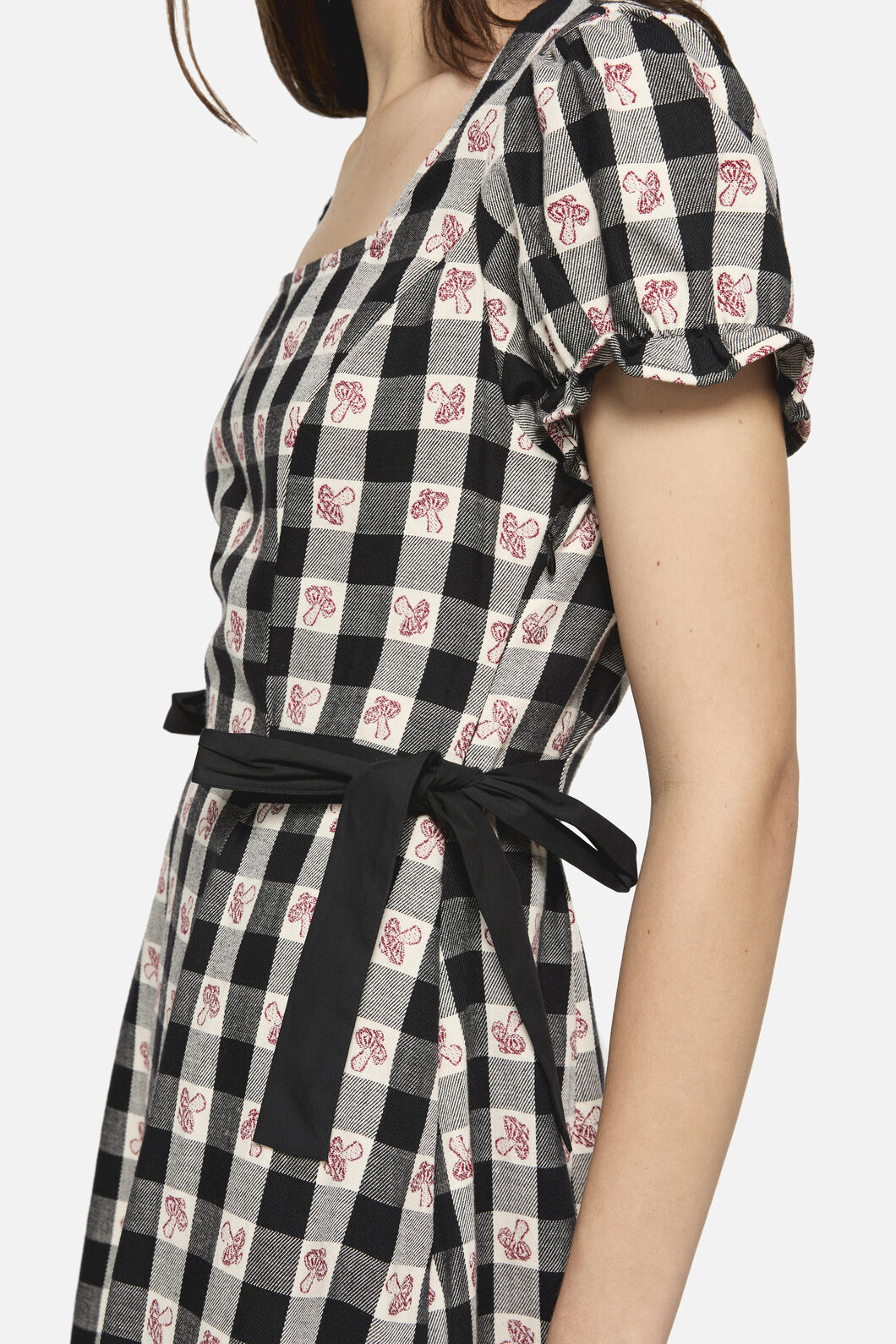 Embrace cottage style charm with the Sweet Home Gingham Dress by Dangerfield. Crafted in soft stretch cotton gingham, this midi dress features a flattering square neckline, a fitted bodice, and a breezy flared skirt. Short elasticated sleeves and contrast ties at the waist add a playful touch, while side pockets make it as practical as it is sweet.
