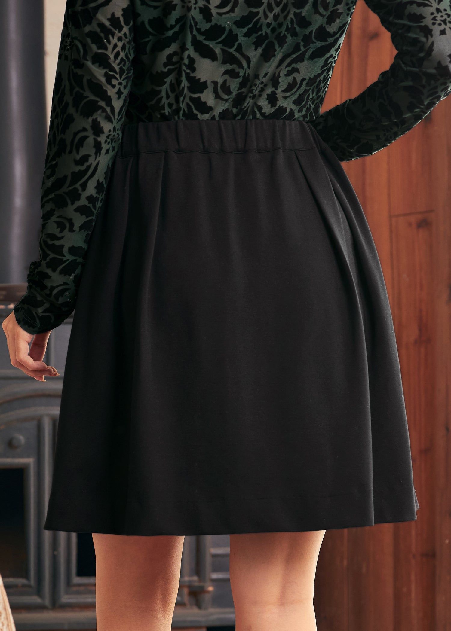 Embrace the charm of yesteryears with the Swingin' Sweetheart Dirndl Skirt, exclusively from our ModCloth namesake label. Crafted from a cozy knit fabric with medium stretch, this classic noir skirt ensures a flattering fit with its elastic waist. The swing silhouette adds a whimsical touch to your winter ensemble, making it perfect for holiday gatherings or a stylish day at the office. Pair it with a vintage blouse and heels for an effortlessly elegant look.