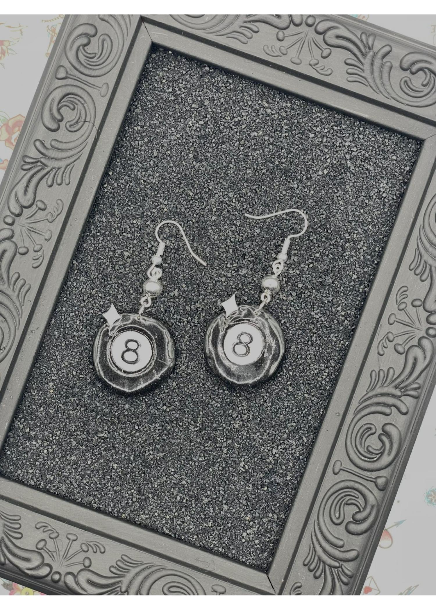 Tattoo Love 8 Ball Dangle Earrings