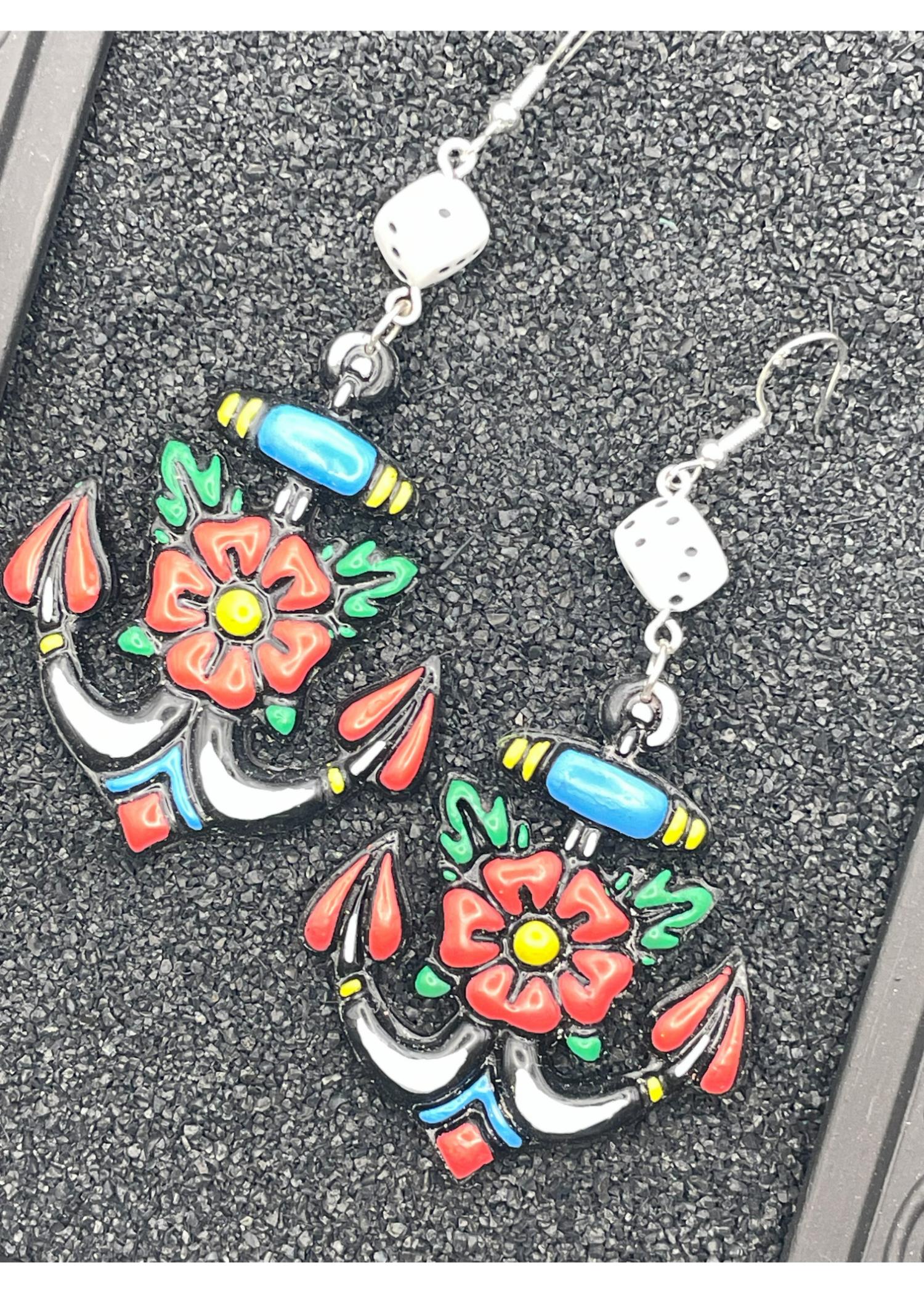 Bring bold, vintage tattoo charm to your look with these handmade dangle earrings inspired by classic Sailor Jerry tattoo art. Each piece is hand-cut from lightweight polymer clay and meticulously hand-painted with rich, timeless colors. The traditional tattoo motifs give them a distinctive, rock-and-roll edge—perfect for everyday wear or adding personality to any outfit. Handmade & hand-painted in traditional tattoo style. Great for gifting or treating yourself!