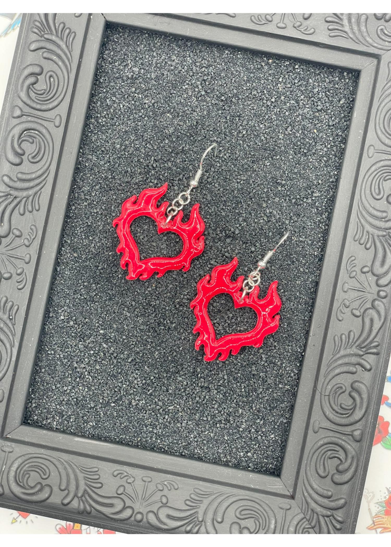 Tattoo Love Flaming Heart Earrings