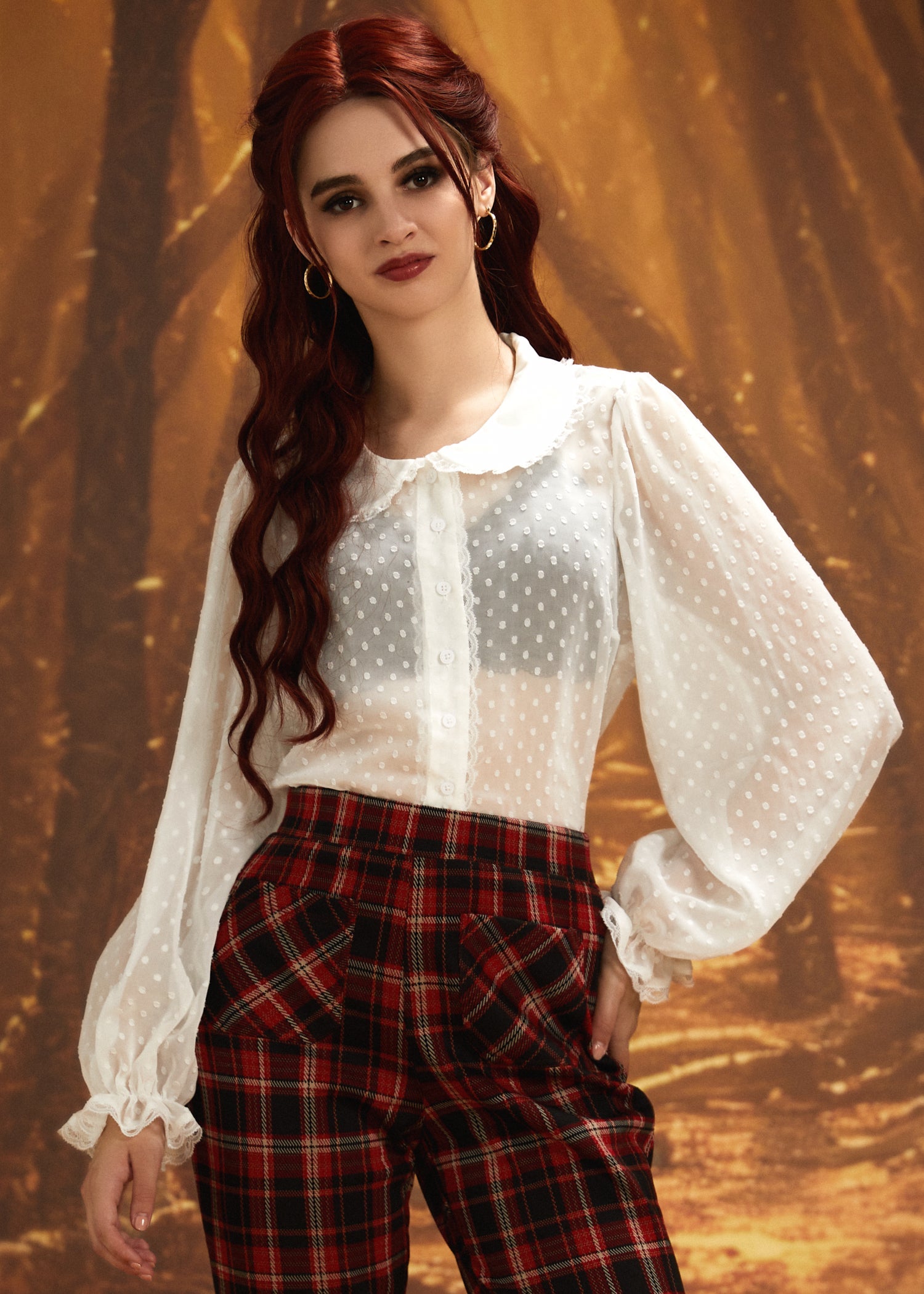 Embrace 1930s-inspired romance with The Amorette Blouse from our ModCloth Namesake Label. Featuring long balloon sleeves, delicate lace trim, and a flowing vintage silhouette, this retro-inspired top pairs beautifully with skirts, high-waist pants, or jeans. Perfect for lovers of nostalgic fashion, it adds feminine charm and timeless elegance to any wardrobe.