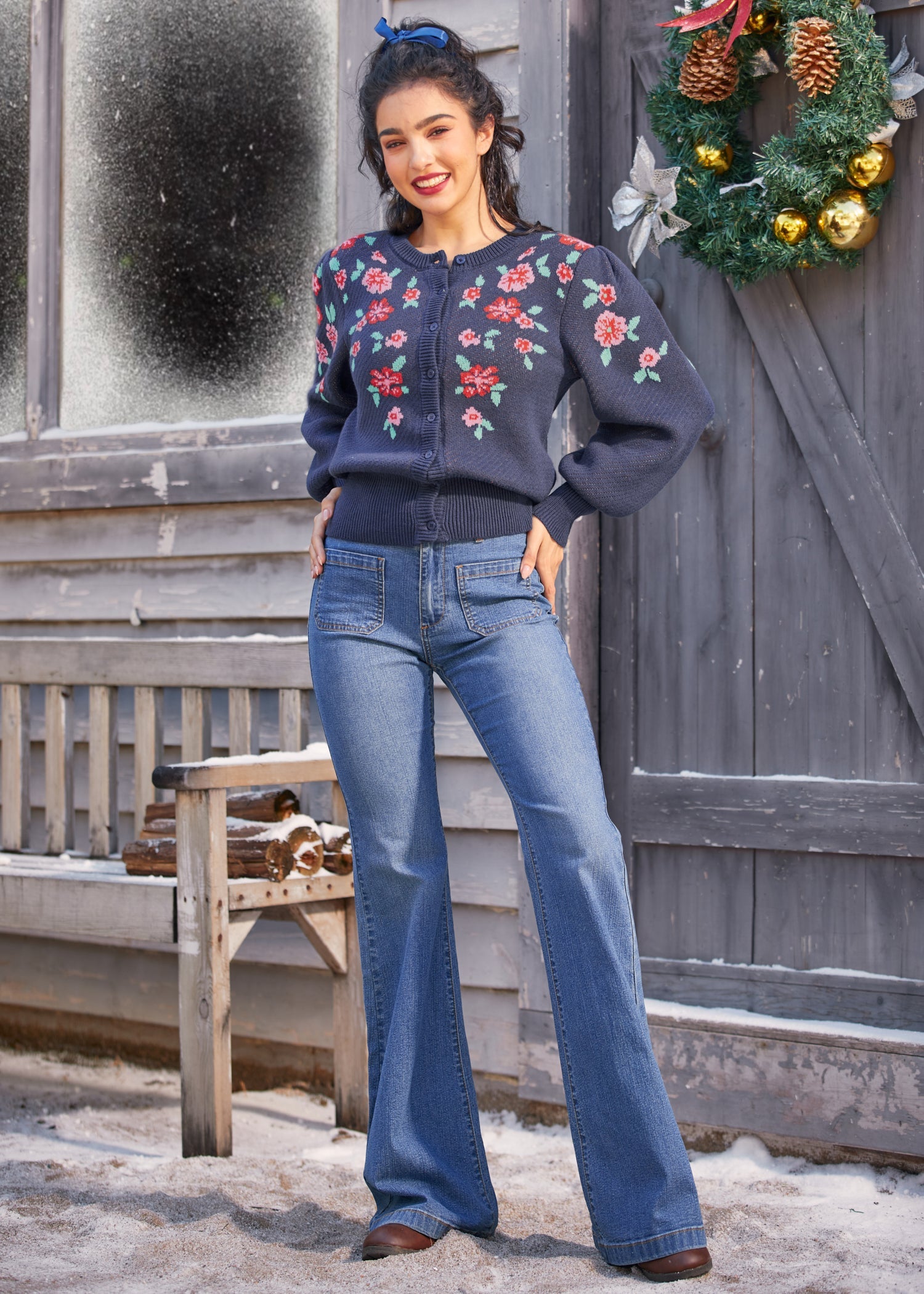 Discover a piece that speaks to the artistry of vintage design with the Timeless Tapestry Jacquard Cardigan in twilight marina, from our ModCloth namesake label. This navy cardigan, adorned with a unique floral jacquard, exudes elegance and warmth. With practical features like buttons and medium-stretch knit, it marries function with fashion. Perfect for layering over evening wear or adding a touch of class to your day outfit, this cardigan is an essential for those who cherish timeless style and comfort.