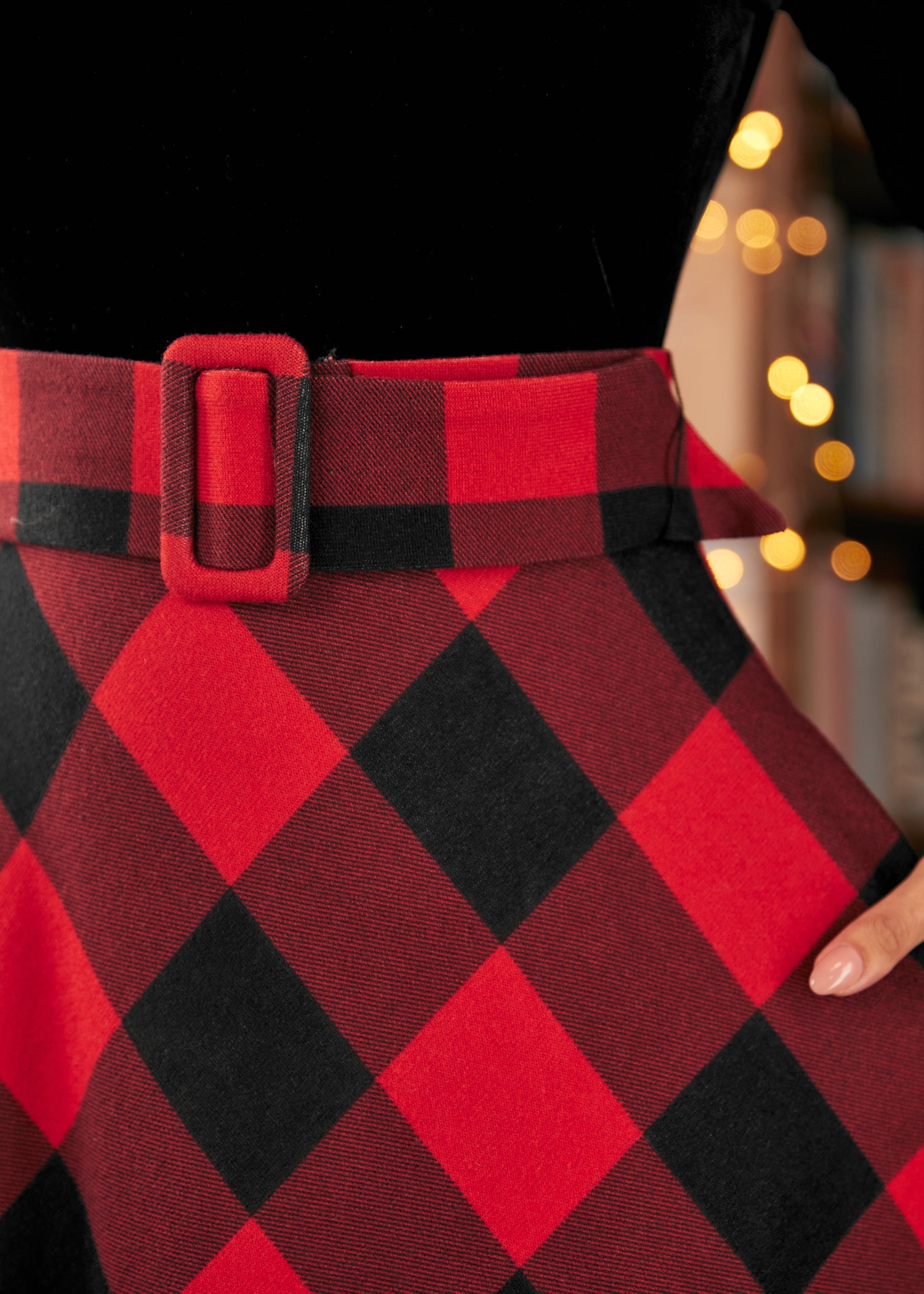 From our ModCloth namesake label comes the Twilight Serenade Midi Dress, a nostalgic ode to vintage charm with a modern twist. Clad in a striking crimson check, this knit piece offers a flattering double scoop neck top and a contrasting skirt, accented with a sash waist for a defined silhouette. Medium stretch ensures comfort and flexibility, while a discreet pocket adds a functional touch. Ideal for festive gatherings or cozy winter dates, this dress guarantees a stunning entrance.