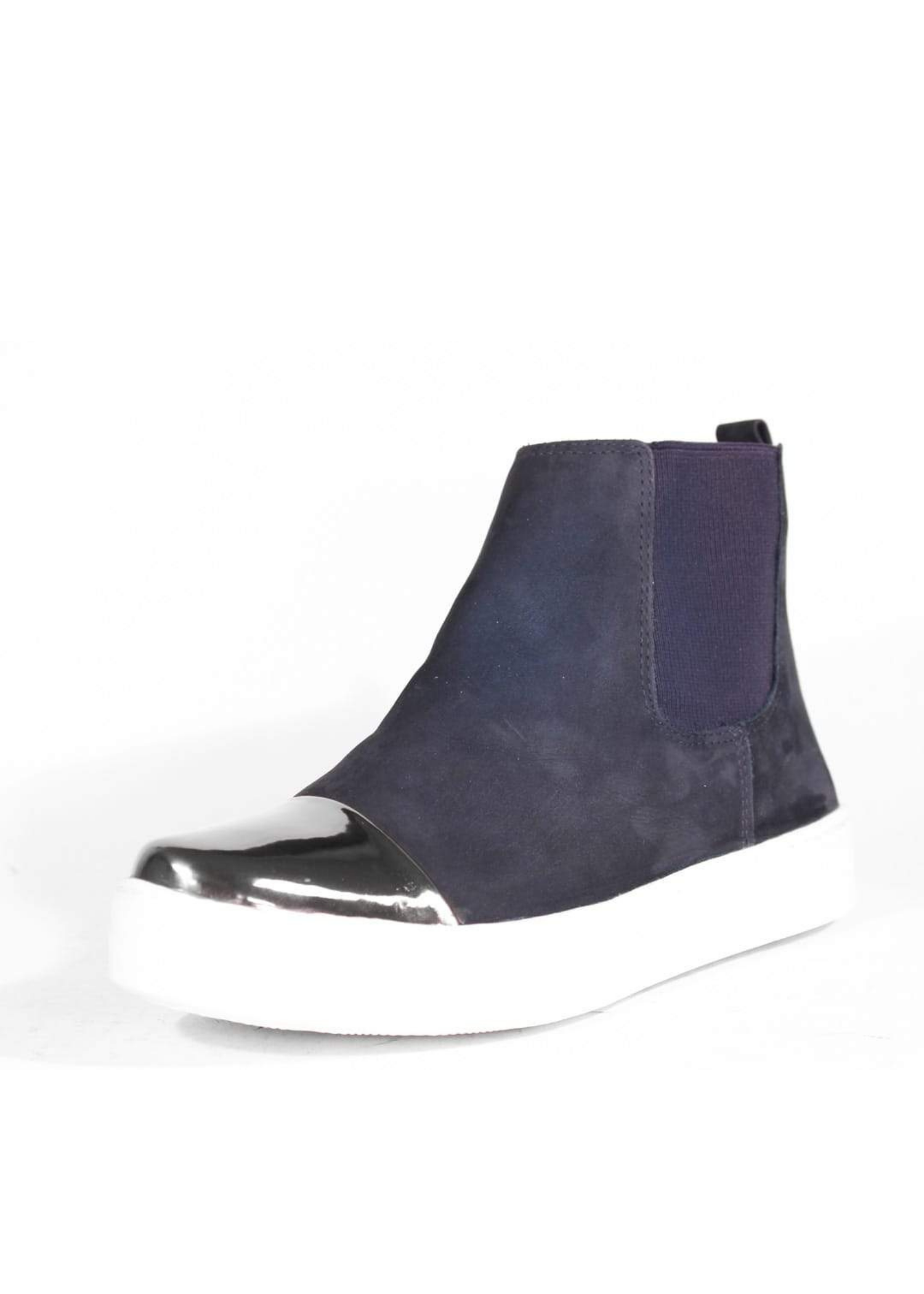 These perfect high top suede sneakers with a slight platform are paired with a funky silver toe cap.
